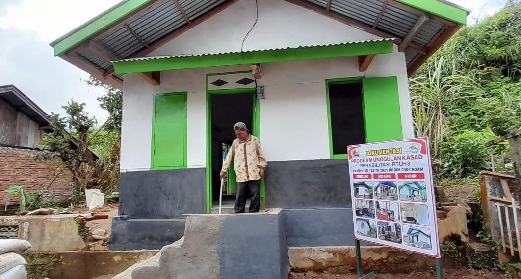 Agam – Pembangunan rehabilitasi Rumah Tidak Layak Huni (RTLH) dalam program TNI Manunggal Membangun Desa (TMMD) ke-123 Kodim 0304/Agam akhirnya membuahkan hasil. Berkat kerja keras Satuan Tugas (Satgas) TMMD dan dukungan masyarakat, kini hunian layak telah terwujud dan dinikmati oleh warga yang membutuhkan.