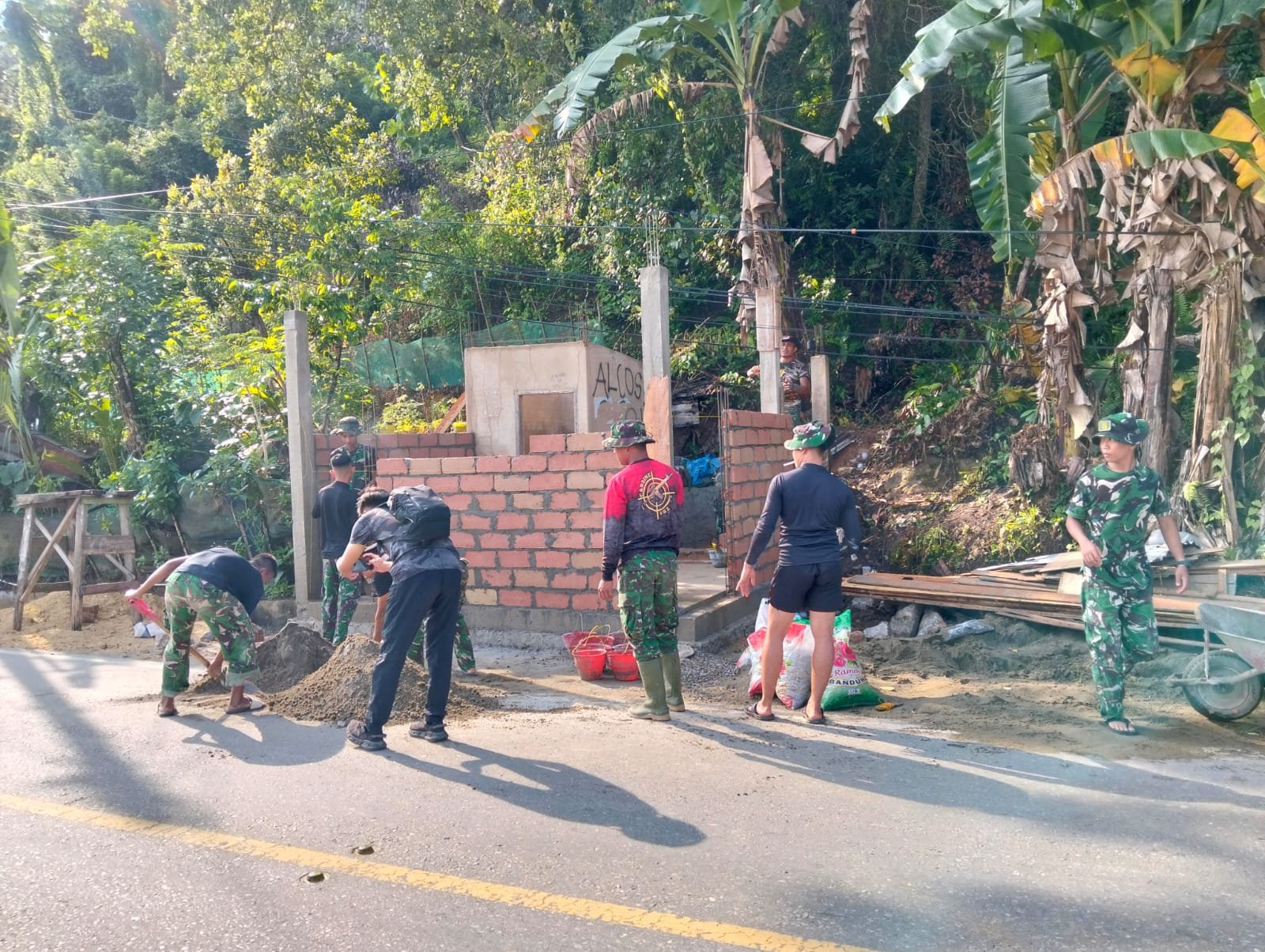 Kendari – Satgas TMMD ke-127 dari Kodim 1417/Kendari bersama masyarakat setempat aktif dalam pengerjaan Mandi Cuci Kakus (MCK) di Kelurahan Sambuli, pada Rabu (25/2). Saat ini, fokus utama mereka adalah memperkuat struktur bangunan sebelum memasuki tahapan finishing.