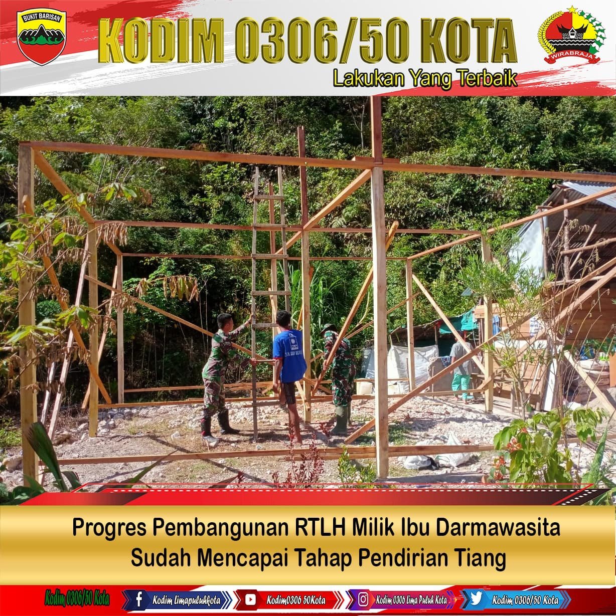 Lima Puluh Kota — Program TNI Manunggal Membangun Desa (TMMD) ke 124 Kodim 0306/50 Kota terus menunjukkan progres signifikan, salah satunya dalam pembangunan Rumah Tidak Layak Huni (RTLH) milik Ibu Darmawasita di Jorong Landai Nagari Harau Kecamatan Harau Kabupaten 50 Kota.