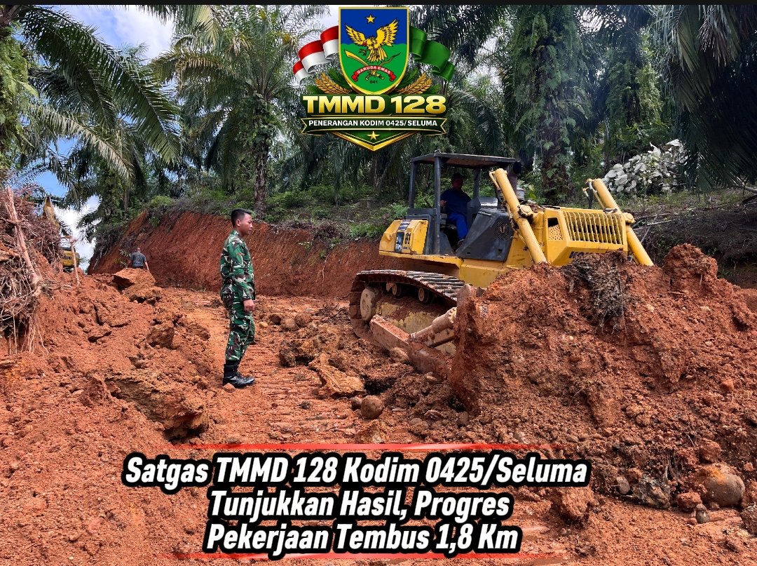 Seluma – Program TNI Manunggal Membangun Desa (TMMD) ke-128 yang digelar oleh Kodim 0425/Seluma di Desa Lubuk Lagan, Kecamatan Talo Kecil, menunjukkan kemajuan yang menggembirakan. Saat ini, pembangunan jalan tembus yang menjadi salah satu fokus utama telah mencapai sepanjang 1,8 kilometer.