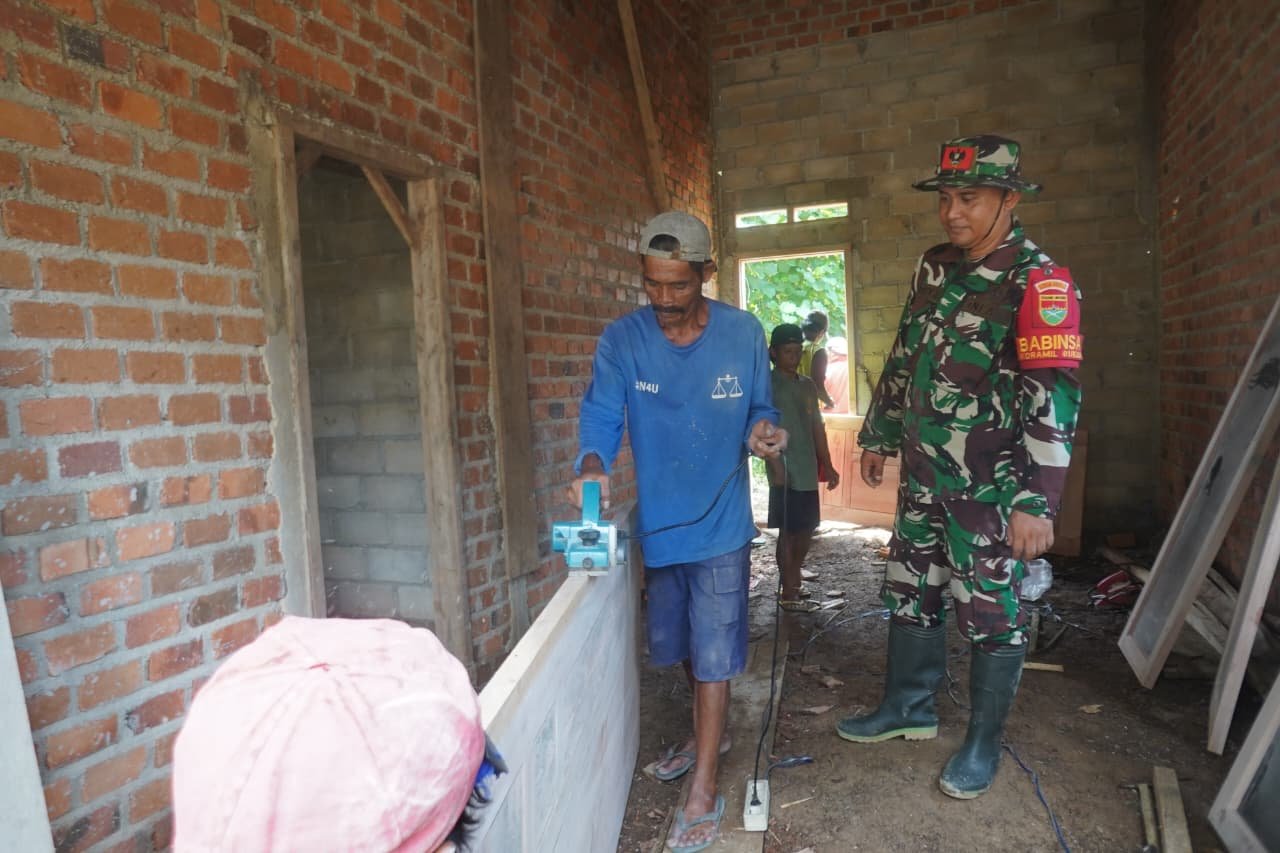 Pesawaran — Program TNI Manunggal Membangun Desa (TMMD) ke-127 yang dilaksanakan oleh Kodim 0421/Lampung Selatan di Desa Tanjung Rejo menunjukkan kemajuan yang signifikan. Saat ini, rehabilitasi Rumah Tidak Layak Huni (RTLH) milik Ibu Siti Hamdiah telah mencapai tahap pemasangan kusen pintu serta reng atap.