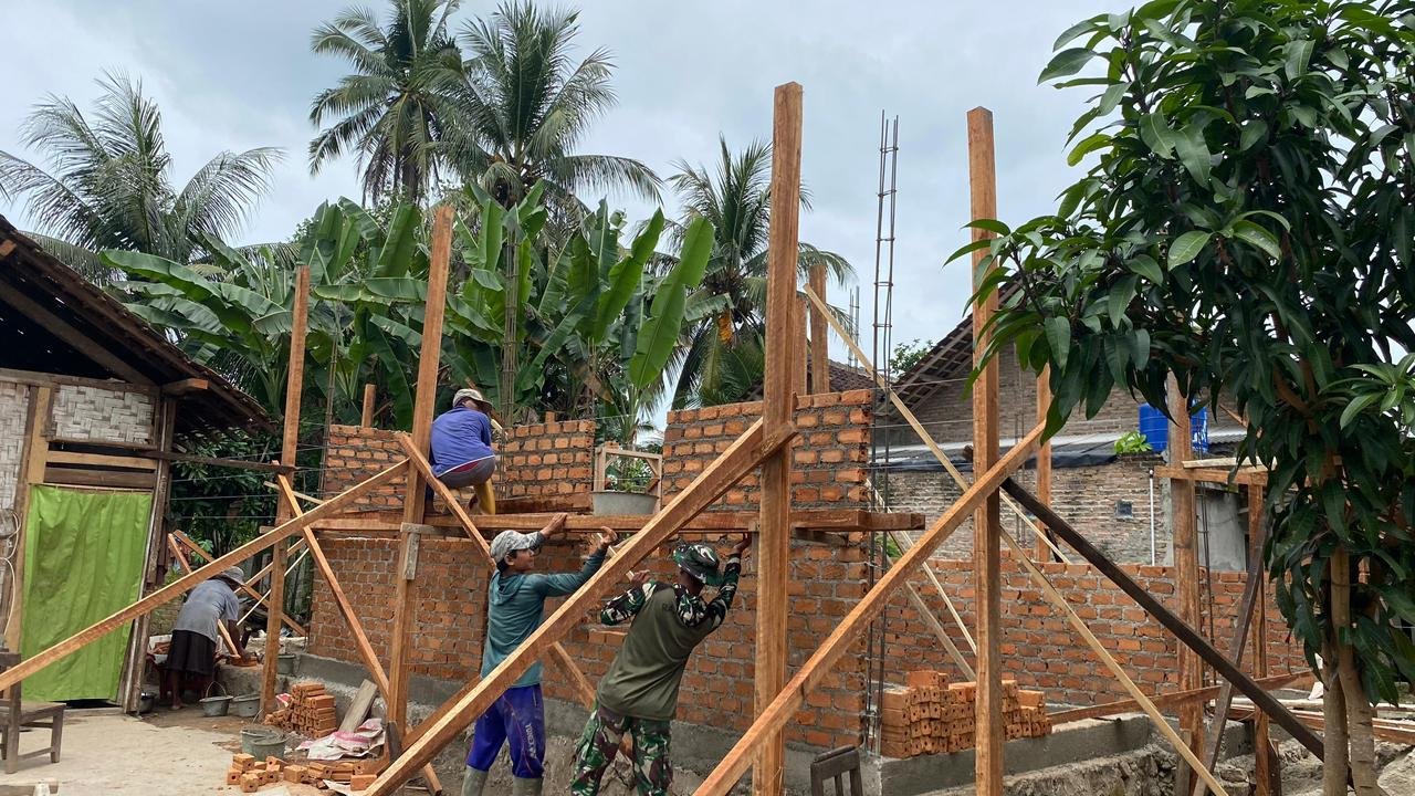 Pesawaran — Program TNI Manunggal Membangun Desa (TMMD) yang diselenggarakan oleh Kodim 0421/Lampung Selatan terus menunjukkan kemajuan signifikan di lokasi sasaran, khususnya di Desa Tanjung Rejo, Kecamatan Way Khilau, Kabupaten Pesawaran. Saat ini, proses rehabilitasi Rumah Tidak Layak Huni (RTLH) milik Bapak Khoirul Anwar telah mencapai tahap pemasangan batu bata.