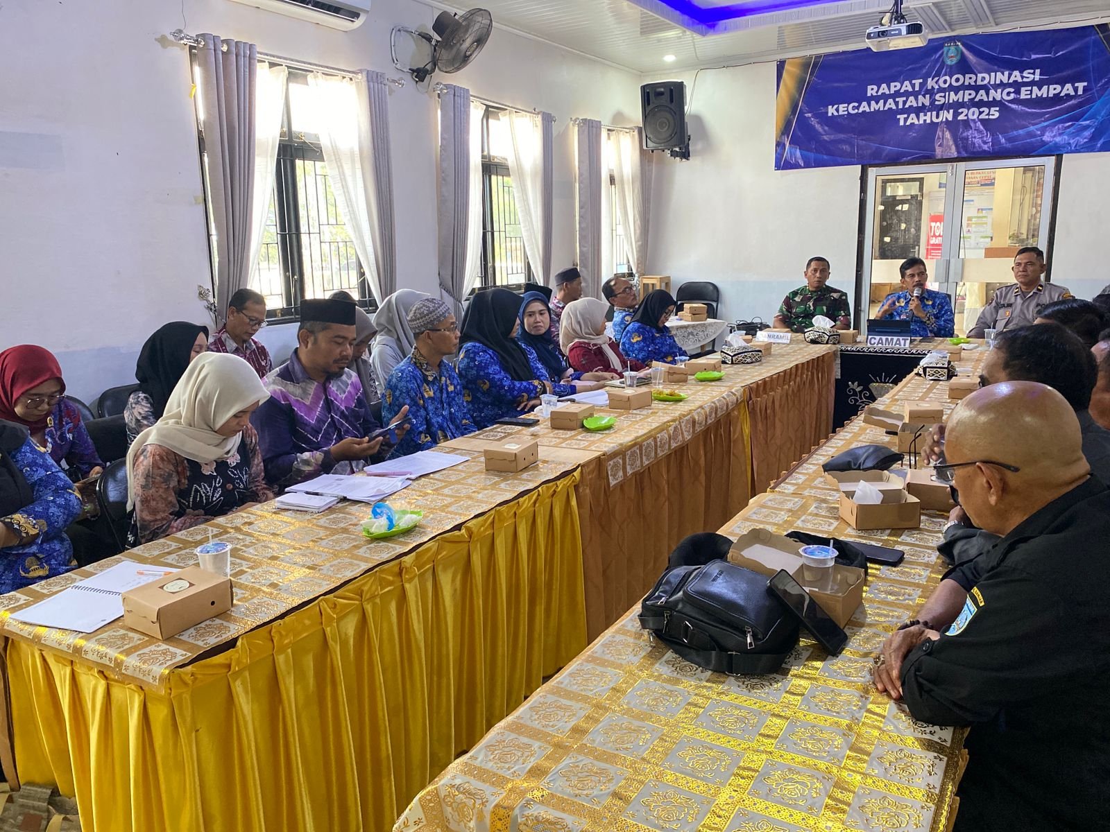 Rapat yang digelar di Aula Kecamatan Simpang Empat ini dipimpin langsung oleh Camat Simpang Empat Drs. Jurji Zaidan, M.Si, dan dihadiri oleh unsur Forkopimcam, para pembekal, pendamping koperasi, serta ketua Koperasi Merah Putih se-Kecamatan Simpang Empat.