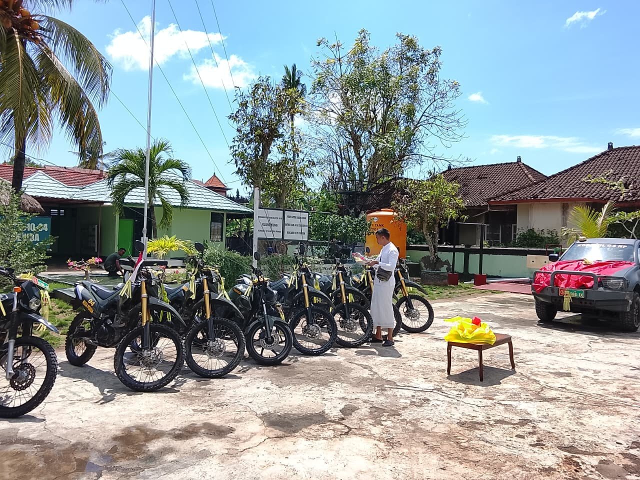 Klungkung,- Koramil 1610-04/Nusa Penida menggelar persembahyangan sekaligus mengupacarai Kendaraan Operasional yang ada di Koramil dalam rangka peringatan hari suci tumpek landep, Sabtu ( 20/09/25 ).