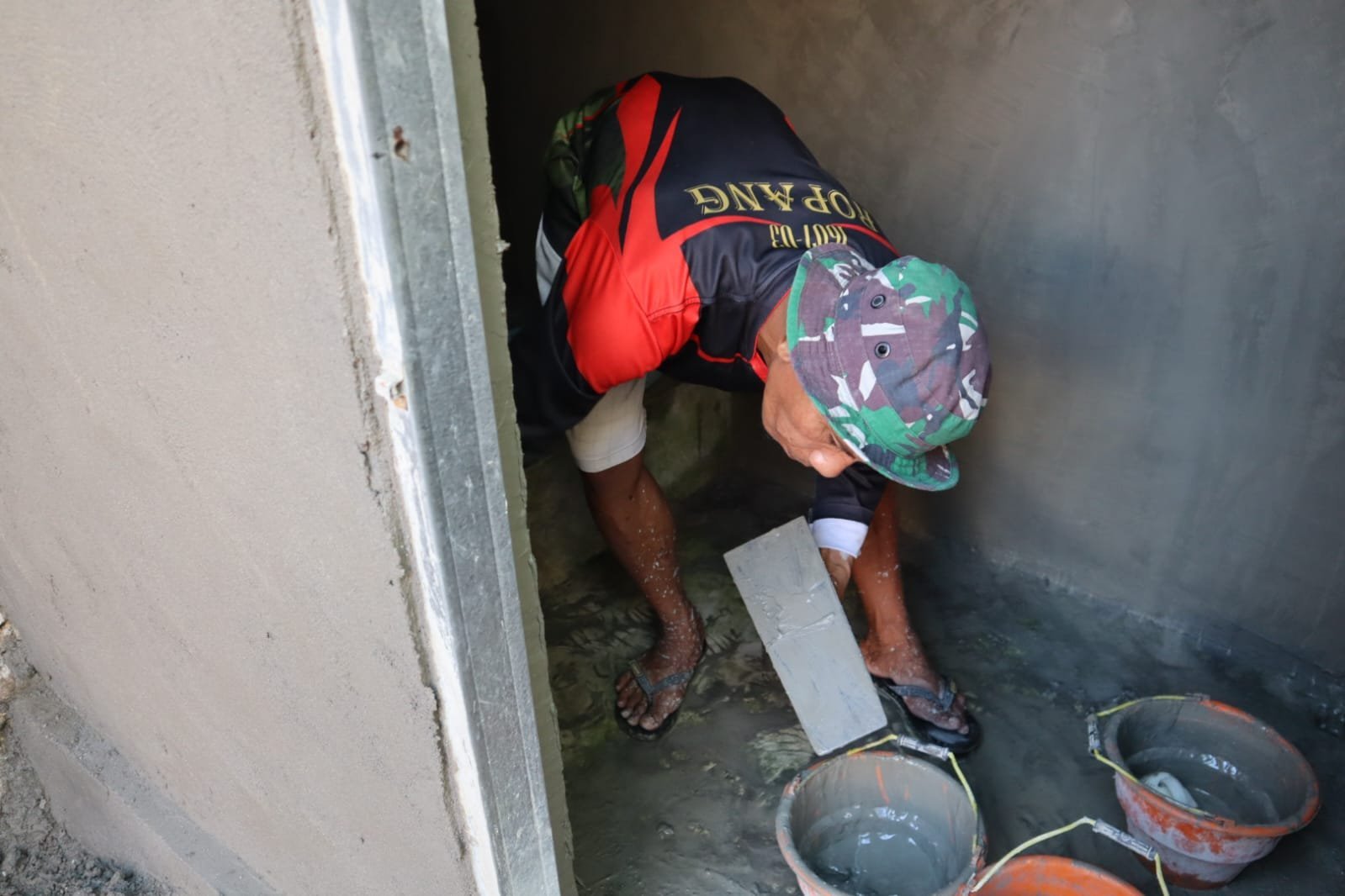 Anggota Satgas TMMD yang mengerjakan proyek tersebut saat ini tengah menyelesaikan tahap pengacian dan pemasangan keramik. Jika berjalan lancar, seluruh proses pembangunan ditargetkan rampung hari ini.