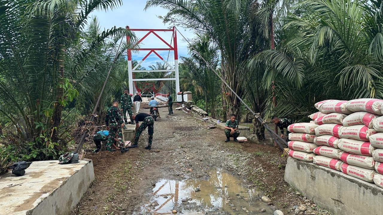 Rehabilitasi Jembatan Perintis Garuda Dikebut oleh Personel Kodim 0428/Mukomuko di Desa Pondok Suguh