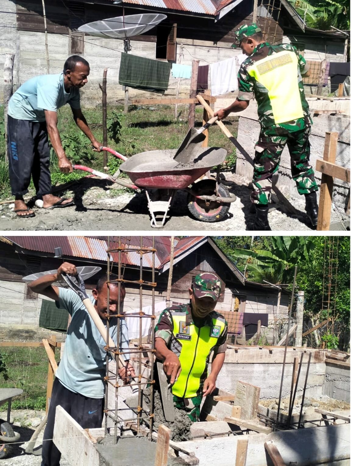 Kegiatan gotong royong ini dilakukan untuk meringankan beban warga yang sedang membangun rumah. Pelda Suwandi tidak hanya memberikan tenaga, tetapi juga memberikan arahan teknis sederhana agar proses pengecoran berjalan lancar dan hasilnya kokoh.