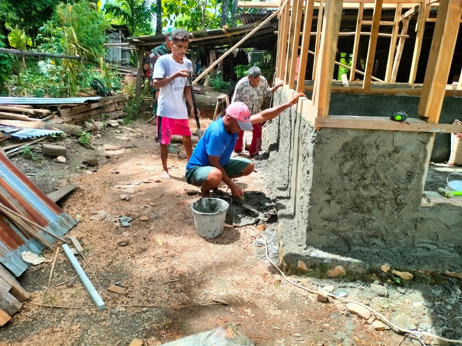 “Kami tidak hanya membangun rumah, tapi juga harapan bagi mereka yang membutuhkan,” ujar Serda Ferdinan sambil memeriksa ketebalan plesteran di salah satu dinding.