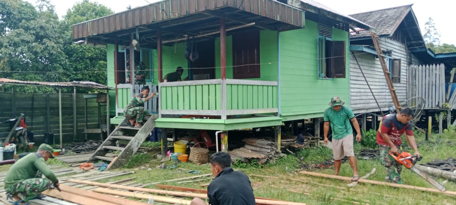 Kapuas Hulu – Perbaikan Rumah Tidak Layak Huni (RTLH) Program TMMD Reguler ke-124 Kodim 1206/Putussibau terus dikerjakan Oleh anggota Satgas agar keluarga penerima bantuan tersebut dapat segera menempatinya.