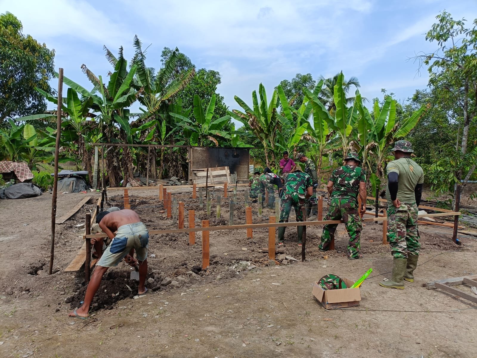 Berdasarkan laporan yang diterima dari Peltu Hari Maladi pada Jumat (10/10/2025), pekerjaan di lokasi tersebut meliputi pemasangan tongkat yang telah mencapai 80 persen, pemasangan glagar 40 persen, dan tiang utama yang juga sudah 40 persen terpasang.