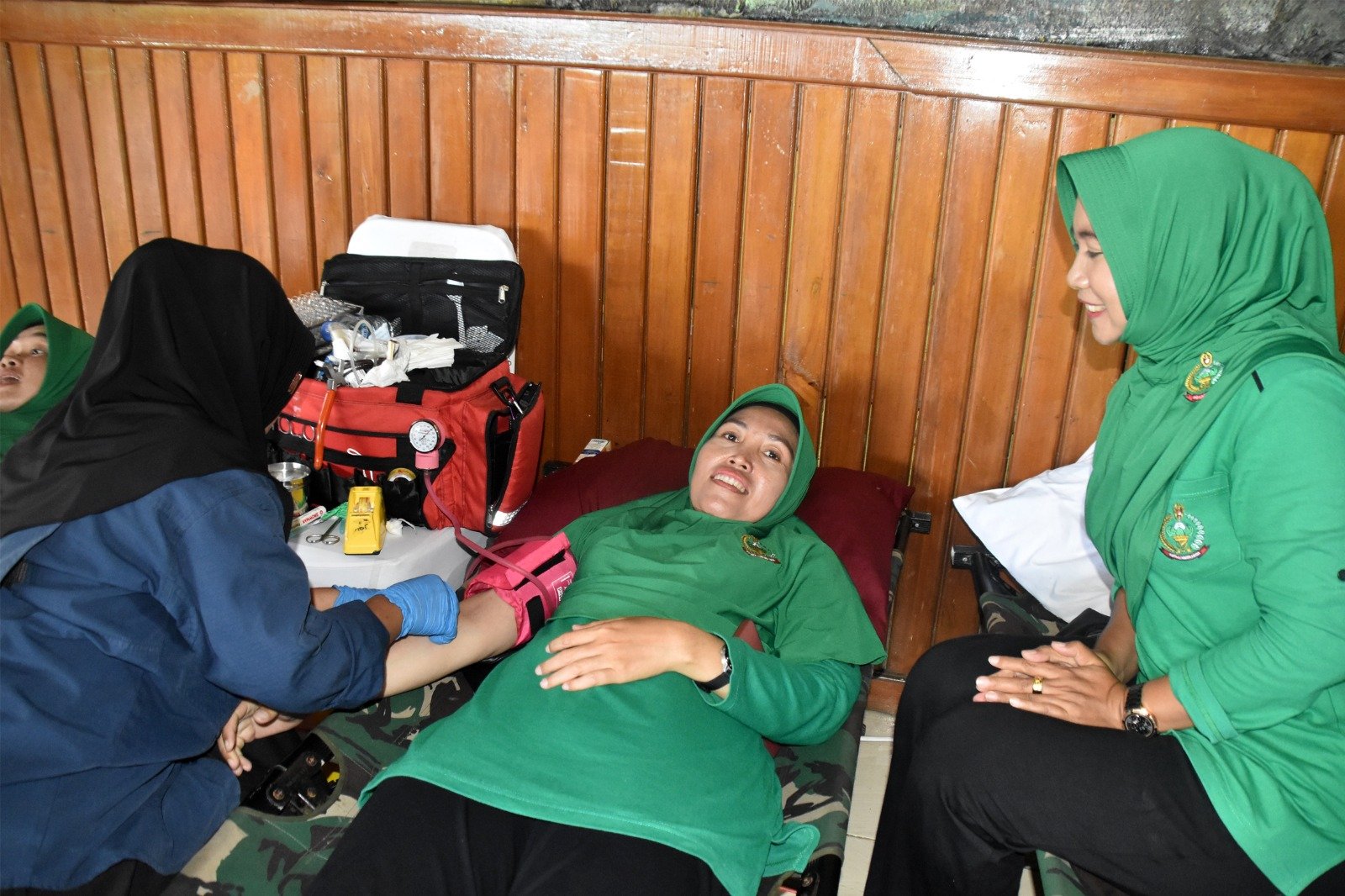 Kegiatan donor darah tersebut turut dihadiri Danrem 174/ATW Brigjen TNI Andy Setyawan, S.Sos,. MIP., Kasrem 174/ATW Kolonel Inf Ahmad Hadi Hariono, M.Han., Para Kasi Korem 174/ATW, Danyonif 757/GV Letkol Inf Derek Serembi Rubbing, Dandenkesyah 17.04.03/Merauke Letkol Ckm Ketut Sukrisno, Kepala Unit Tranfusi Darah Kabupaten Merauke dr. Siti Jumaiti, Kepala Bagian Mutu PMI Kabupaten Merauke dr. Shinta M. dan para Pengurus Persit KCK Koorcab Rem 174 PD XVII/Cenderawasih beserta jajarannya.