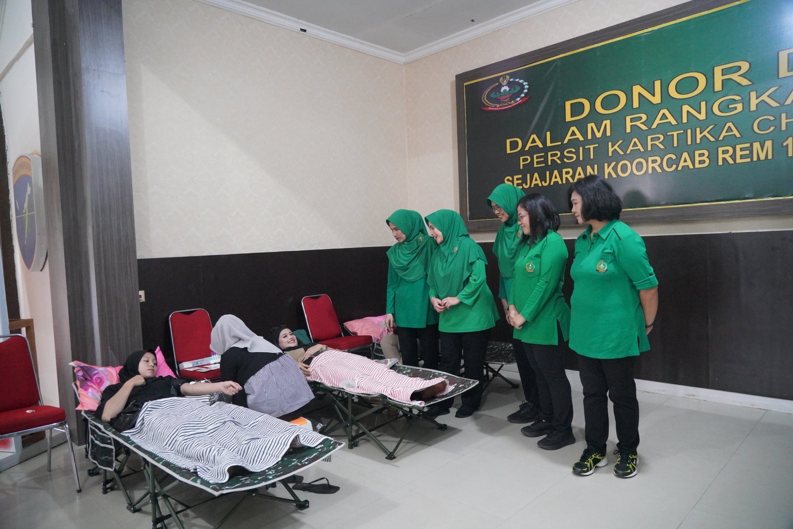 Kasipers Kasrem 121/Abw Kolonel Kav Jacob Janes Patty, S.I.P., selaku pembina harian Persit KCK Koorcab Rem 121 PD XII/Tanjungpura serta para Kasi Korem 121/Abw dan juga pengurus Persit KCK Koorcab Rem 121 PD XII/Tpr, ikut serta dalam kegiatan donor darah yang diikuti oleh 300 personil. Sebelum melaksanakan donor darah diadakan screening terhadap pendonor.