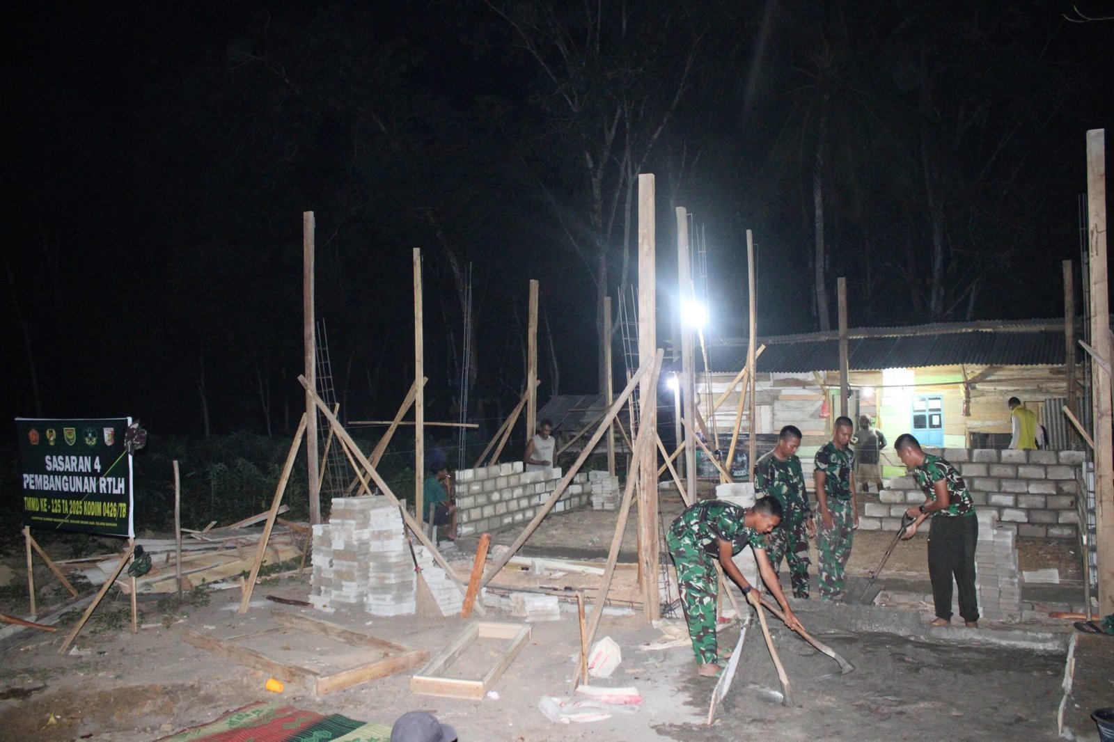 Sumber Makmur, Banjar Margo — Program TNI Manunggal Membangun Desa (TMMD) ke-125 Kodim 0426/Tulang Bawang terus menunjukkan progres nyata. Pada Sabtu, 26 Juli 2025, Satgas TMMD bersama warga Kampung Sumber Makmur, Kecamatan Banjar Margo, Kabupaten Tulang Bawang, melaksanakan pemasangan batu bata sebagai bagian dari pembangunan Rumah Tidak Layak Huni (RTLH) pada sasaran 4.