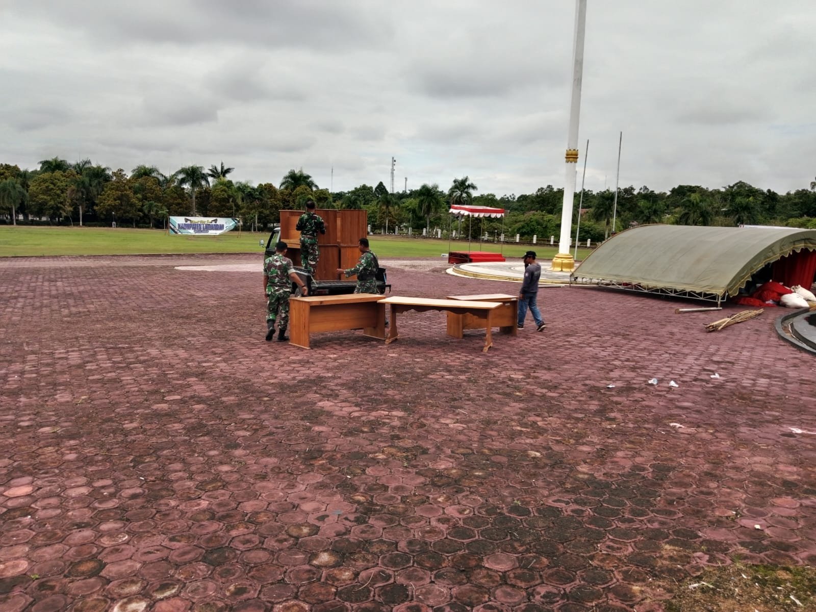 Di lapangan, tampak prajurit Satgas bersama warga membersihkan lingkungan, menata lokasi, hingga menyiapkan sarana upacara. Kegiatan tersebut dilakukan dengan semangat gotong royong, sebagaimana yang menjadi jiwa dari pelaksanaan TMMD.