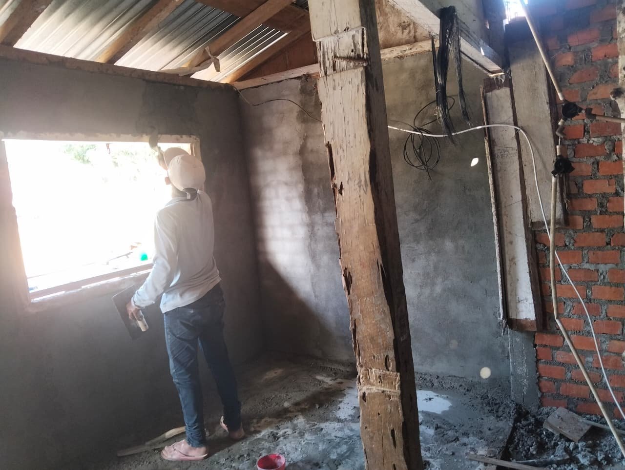 Di lokasi proyek, terlihat anggota Satgas bekerja dengan seksama dalam meratakan plester di dinding bagian dalam rumah. Mereka berusaha memastikan bahwa setiap aspek pengerjaan dilakukan dengan menyeluruh agar hasil akhir mencapai standar kelayakan tempat tinggal.