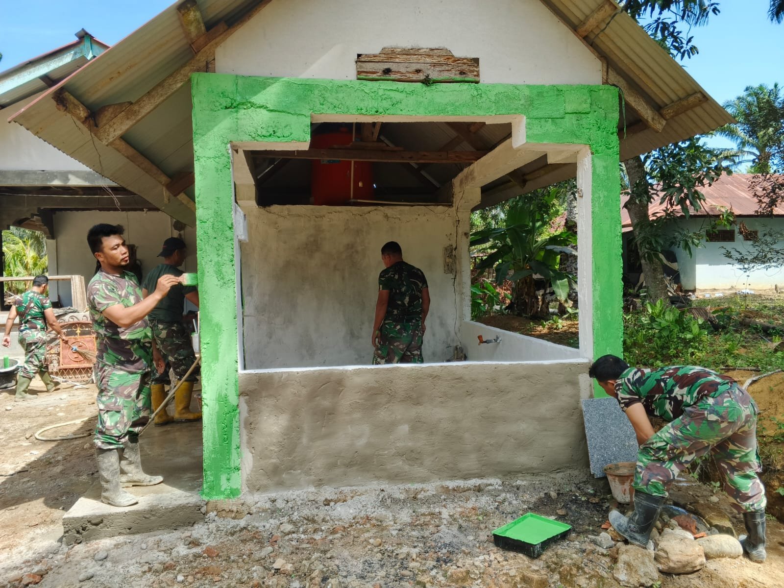 “Bangunan MCK ini akan dipakai jangka panjang, jadi kita harus pastikan catnya awet dan tetap enak dipandang,” ungkap salah seorang Satgas yang tengah memegang kuas.