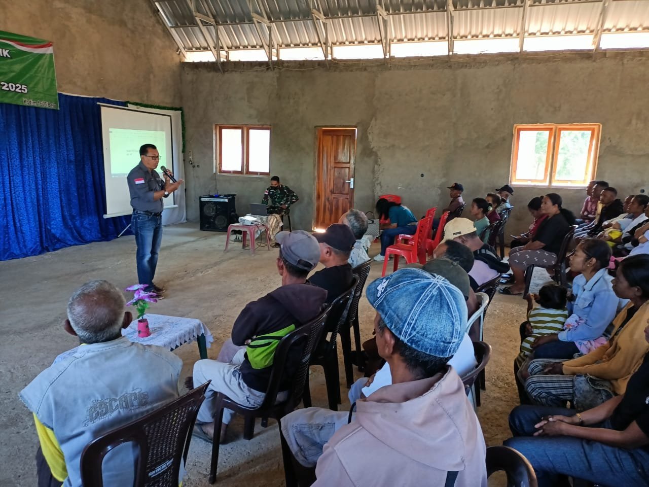 BELU – Satgas TMMD ke-125 Kodim 1605/Belu bersama Dinas Peternakan dan Perikanan Kabupaten Belu melaksanakan penyuluhan kesehatan hewan ternak kepada warga Desa Naekasa, Kecamatan Tasifeto Barat, Jumat (15/8/2025). Kegiatan ini berlangsung di Gedung Gereja GBI Maranatha Dusun Mauulun dan dihadiri puluhan masyarakat yang sebagian besar berprofesi sebagai peternak sapi, babi, maupun kambing.