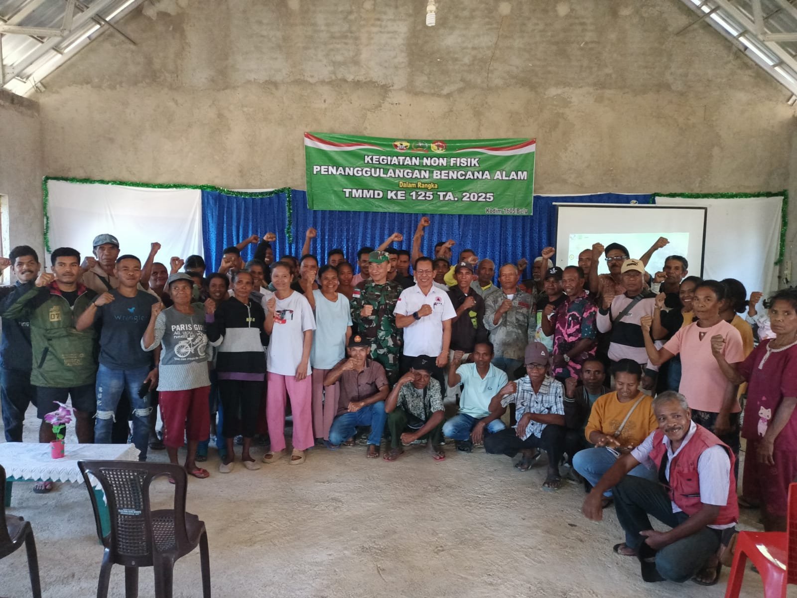 Belu, 13 Agustus 2025 – Sebagai bagian dari kegiatan non-fisik program TMMD ke-125, Satgas Kodim 1605/Belu bekerja sama dengan Dinas BPBD Kabupaten Belu menggelar penyuluhan penanggulangan bencana alam bagi masyarakat Desa Naekasa, Kecamatan Tasifeto Barat.
