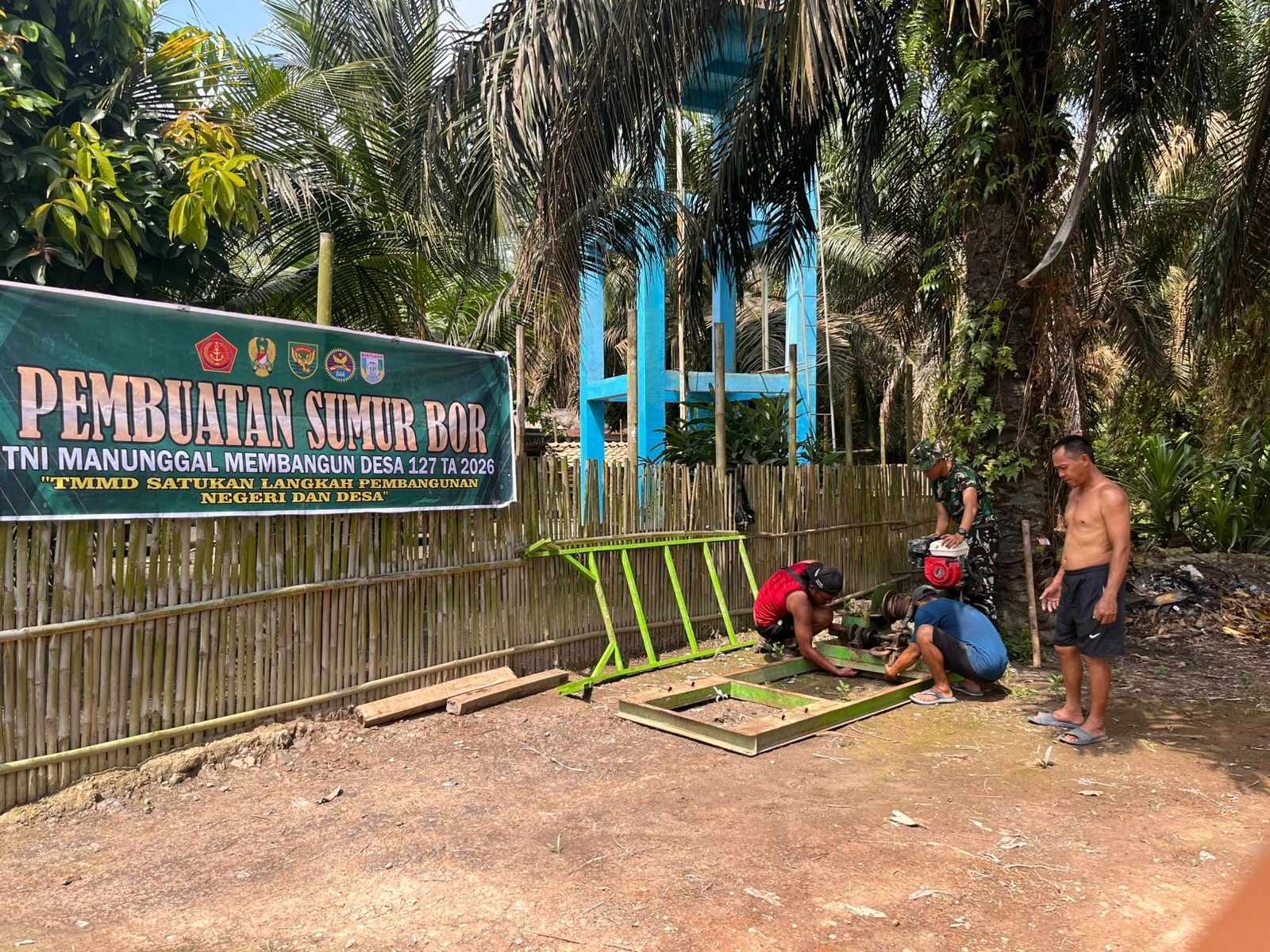 Banyuasin, 25/02/2026 – Anggota Satgas TMMD ke-127 dari Kodim 0430/BA berkolaborasi dengan warga Desa Wonosari, Kecamatan Pulau Rimau, melanjutkan proyek pembangunan sumur bor kedua yang terletak di Jalur 1, di belakang rumah Kepala Desa.