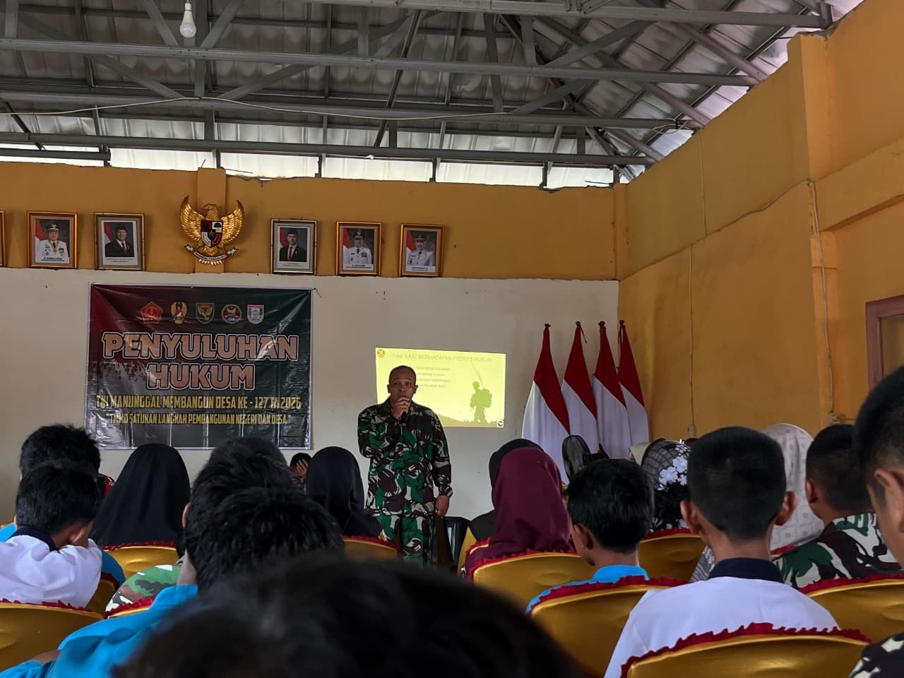 Banyuasin, 27 Februari 2026 – Untuk mendukung keberhasilan program nonfisik TMMD ke-127, Satgas TMMD Kodim 0430/BA melaksanakan penyuluhan hukum di Desa Wonosari, Kecamatan Pulau Rimau. Kegiatan ini dihadiri oleh Pelda Tri Susilo, S.H., Bamin Kumrem Korem 044/Gapo, yang menjadi narasumber dalam acara tersebut.