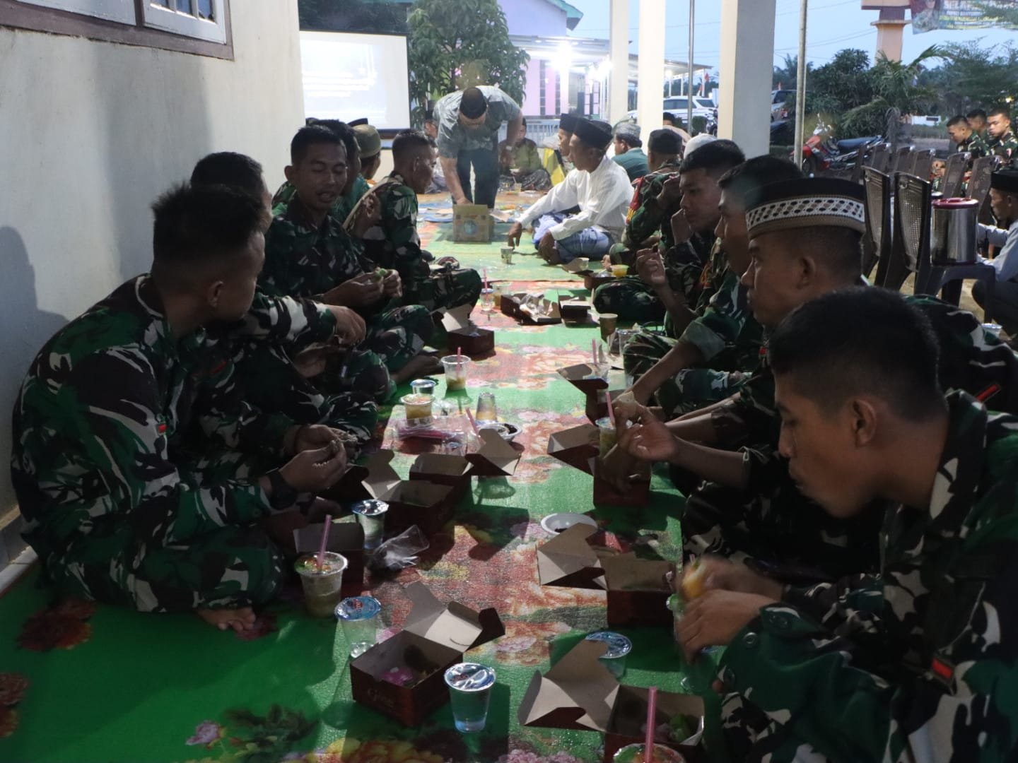 Acara tersebut dihadiri oleh Kasdim 0430/Banyuasin, Mayor Inf Saibudin, serta Pasiterdim 0430/Banyuasin, Kapten Inf Panca Agung. Kehadiran kedua perwira tersebut menambah suasana keakraban dalam acara buka puasa ini, di mana anggota Satgas terlihat akrab berinteraksi dengan warga setempat.