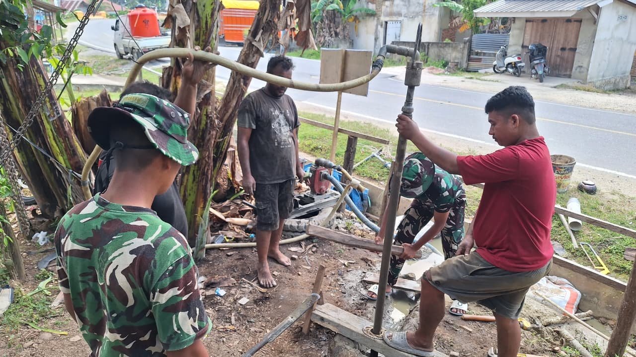 Pekerjaan pengeboran dilakukan secara bertahap dengan mempertimbangkan kondisi tanah dan kedalaman dari sumber air yang ada. Di lokasi pengeboran, tampak prajurit TNI bersinergi dengan warga setempat untuk mengoperasikan peralatan pengeboran serta menyiapkan instalasi yang diperlukan agar proses dapat berjalan dengan lancar.