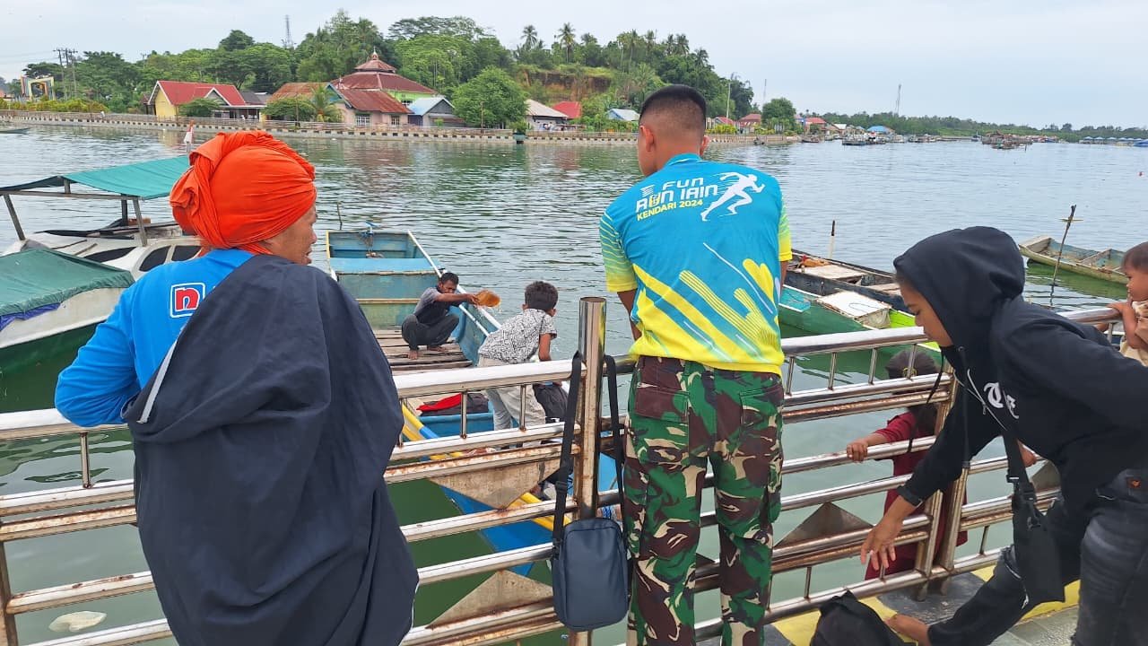Di tengah pelaksanaan proyek fisik, beberapa prajurit terlihat membantu warga pesisir, termasuk anak sekolah dan orang tua, saat akan menaiki perahu di dermaga setempat.