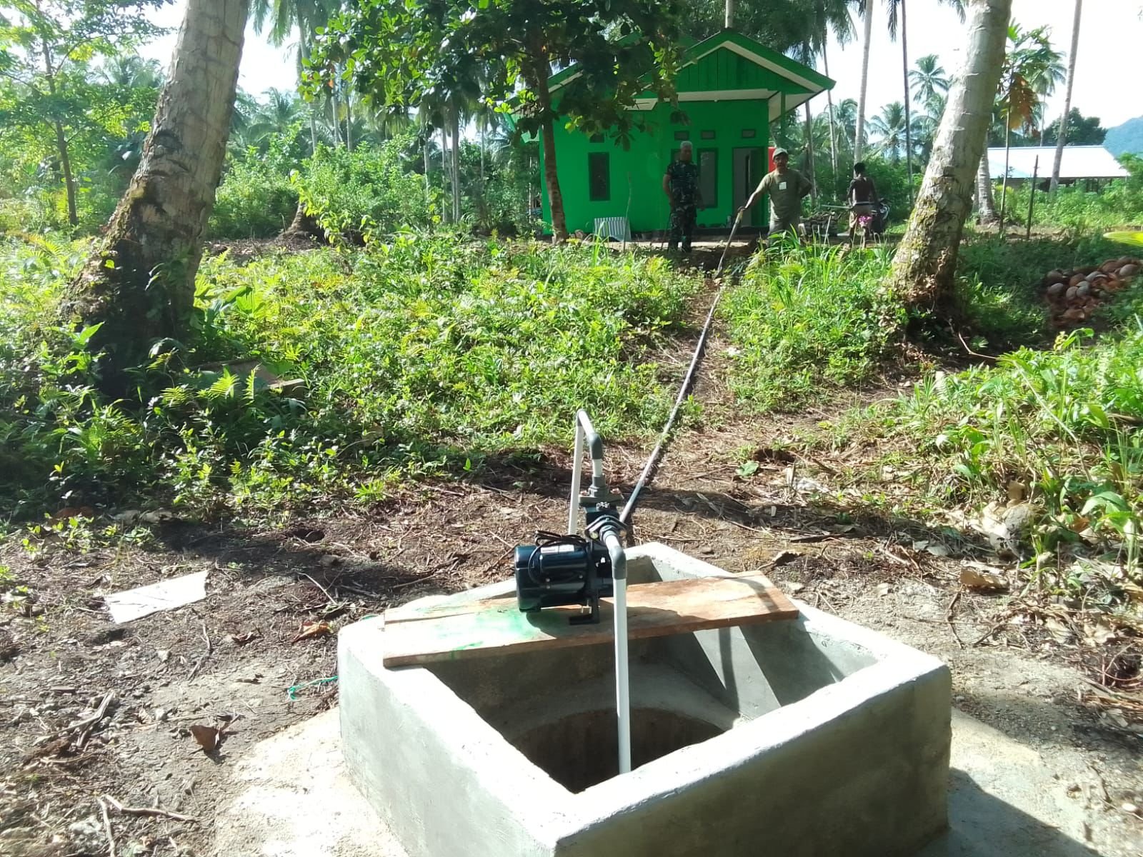Para personel Satgas TMMD terlihat aktif berkolaborasi untuk memastikan mesin air terpasang dengan baik, sehingga air dari sumur dapat langsung dimanfaatkan oleh penghuni rumah. Keberadaan fasilitas ini diharapkan dapat memenuhi kebutuhan air bersih bagi keluarga penerima manfaat.