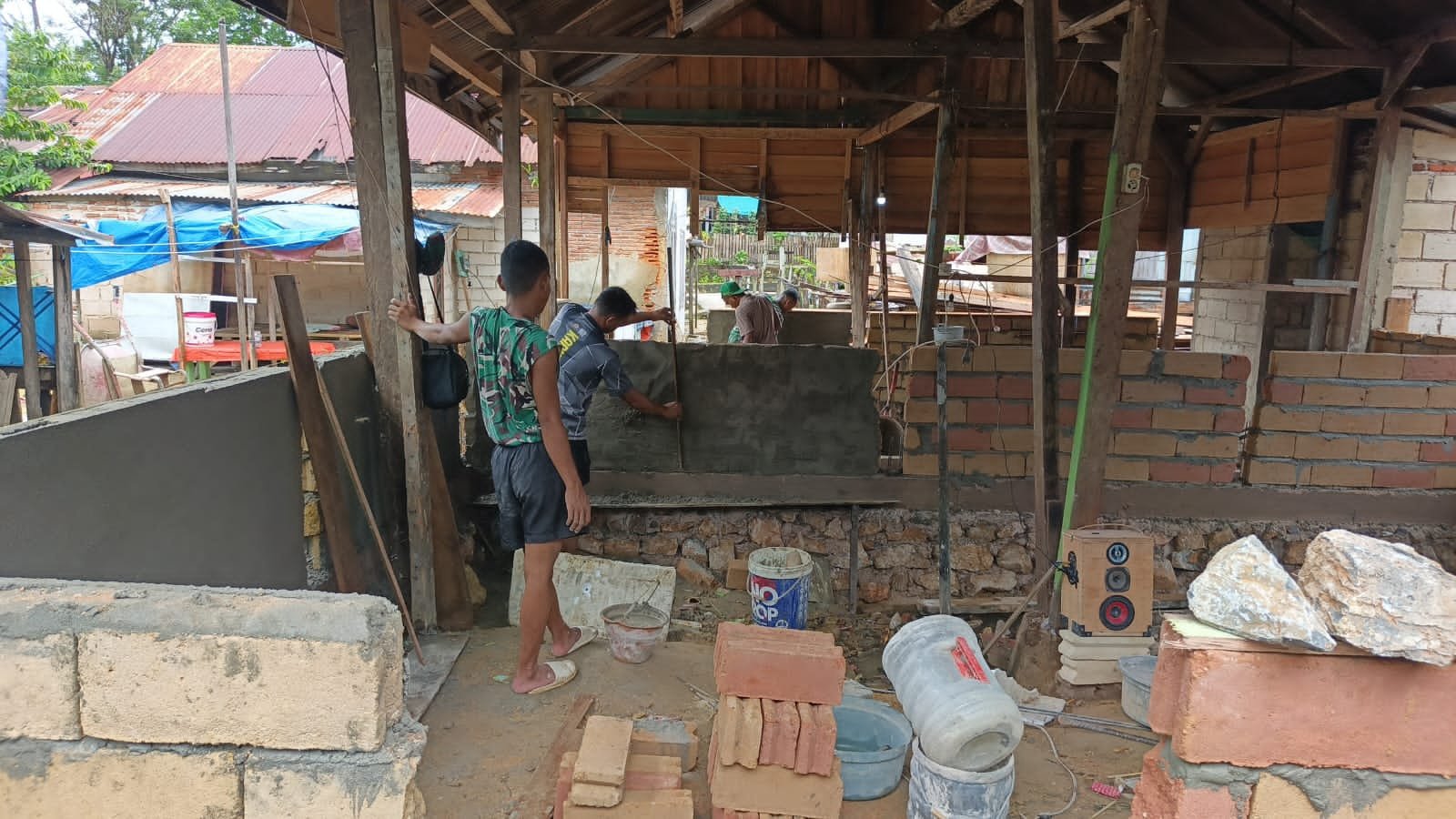 Satgas TMMD 127 Percepat Plester Dinding RTLH di Petoaha