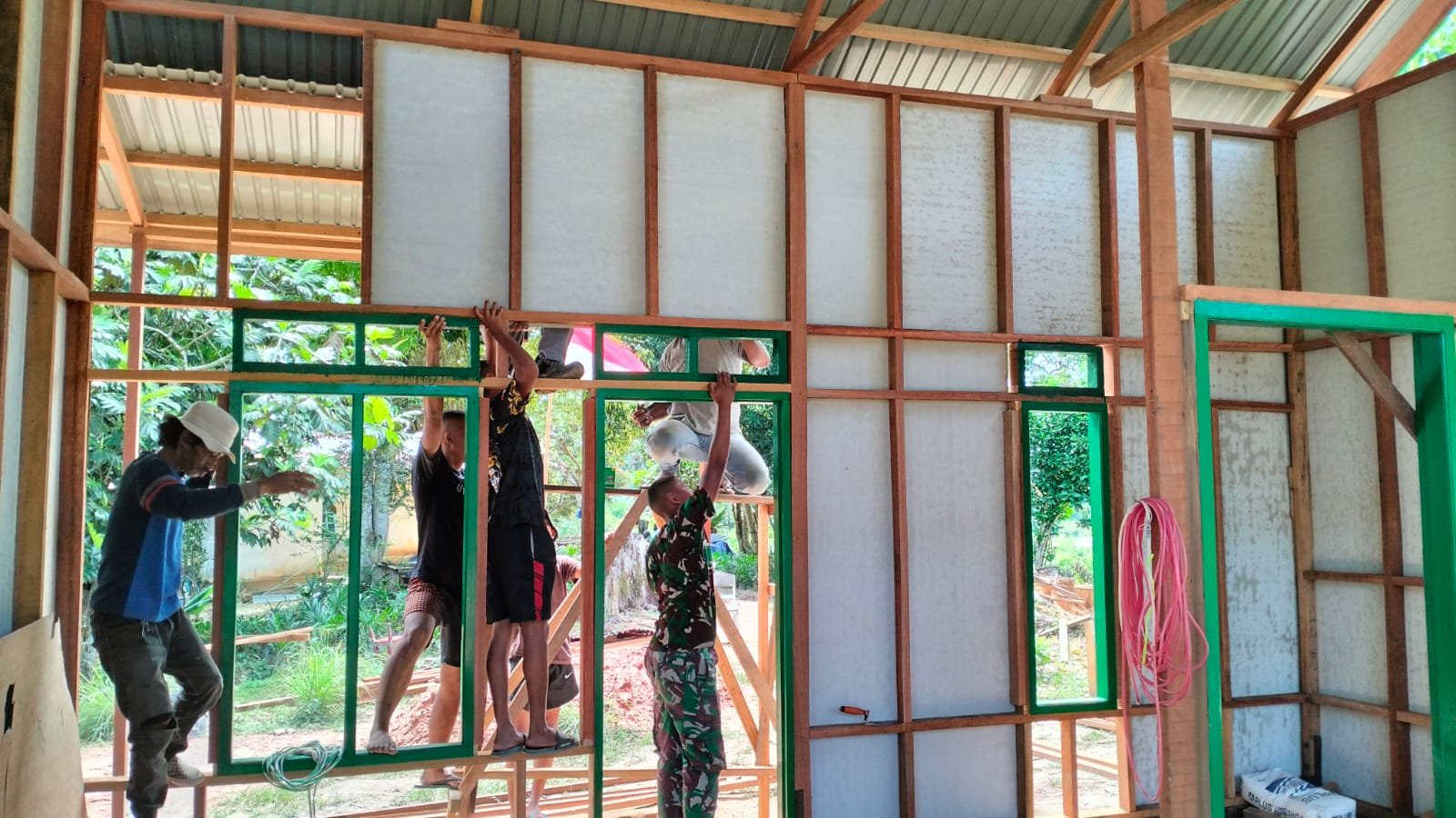 KUTAI TIMUR – Program TNI Manunggal Membangun Desa (TMMD) ke-125 Kodim 0909/Kutai Timur kembali memberikan dampak nyata bagi masyarakat pedesaan. Salah satu bentuk kontribusinya adalah perehaban Rumah Tidak Layak Huni (RTLH) milik Rahman, warga Desa Suka Rahmat, Kecamatan Teluk Pandan, yang kini mulai terlihat rapi dengan pemasangan dinding klasiboard oleh Satgas TMMD bersama warga.
