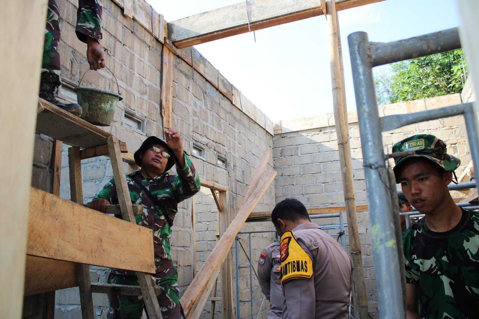 “Kalau tidak dipasang talang dengan baik, air bisa langsung jatuh ke dinding atau pondasi, nanti bisa cepat rusak. Maka bagian ini harus kita kerjakan dengan serius,” ujar salah satu anggota Satgas yang terlibat dalam pengecoran.