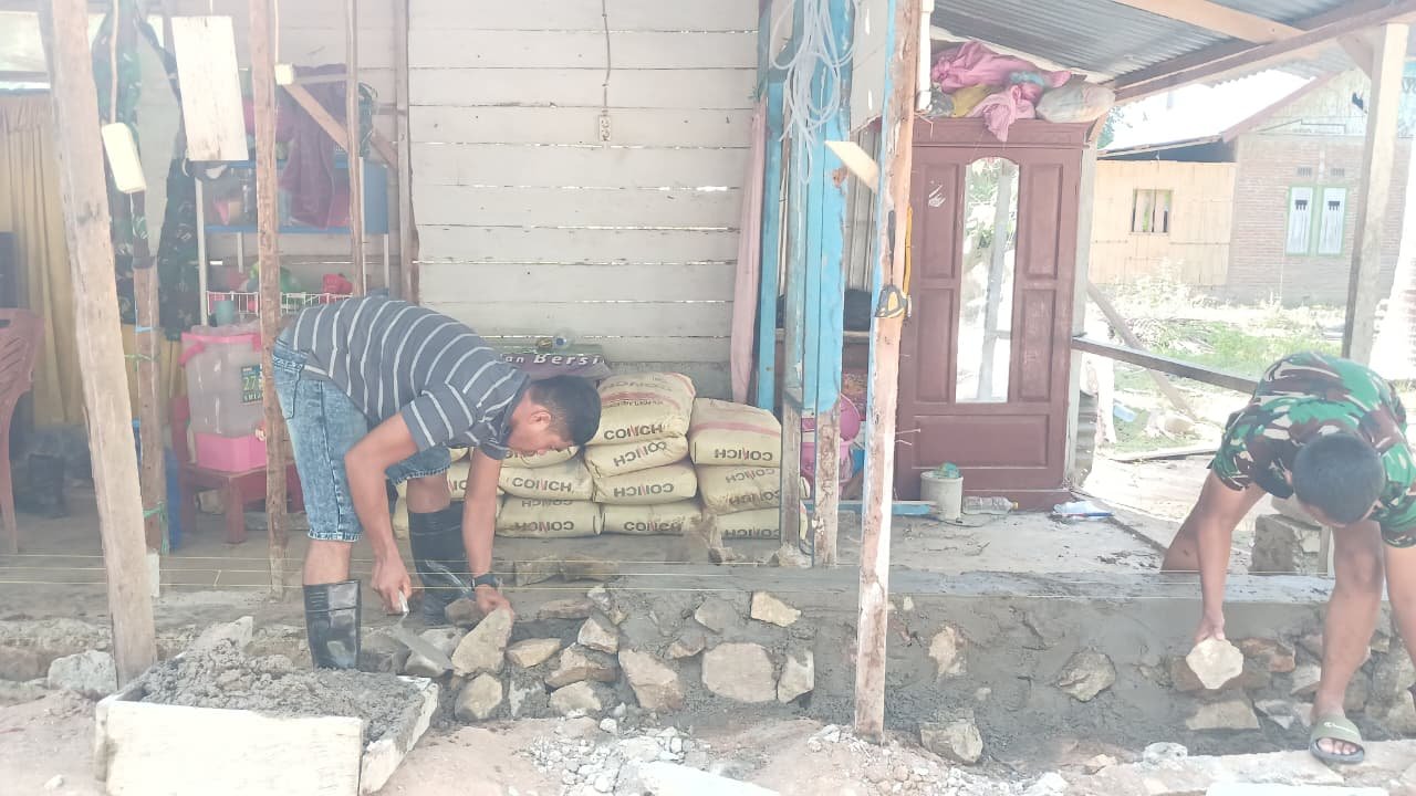 Fondasi Harapan: saat ini, pengerjaan telah memasuki tahap krusial, yakni peletakan batu pertama dan pembangunan fondasi rumah. Fondasi ini simbol ketangguhan sinergi antara TNI dan rakyat.