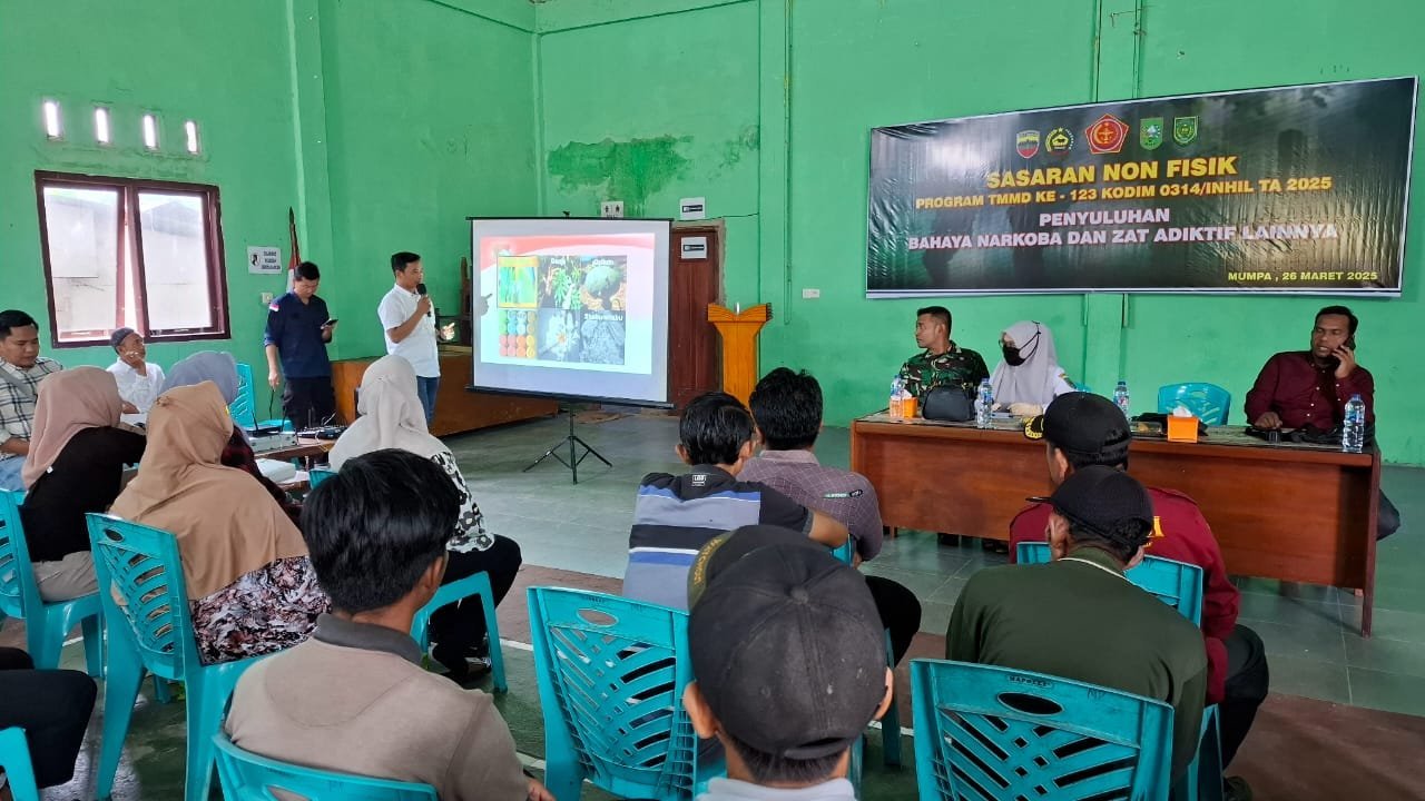 Kegiatan yang berlangsung di Gedung Serba Guna “Tuah Negri” ini merupakan bagian dari sasaran non-fisik TMMD, yang bertujuan untuk meningkatkan kesadaran masyarakat terhadap bahaya narkotika serta upaya pencegahannya.