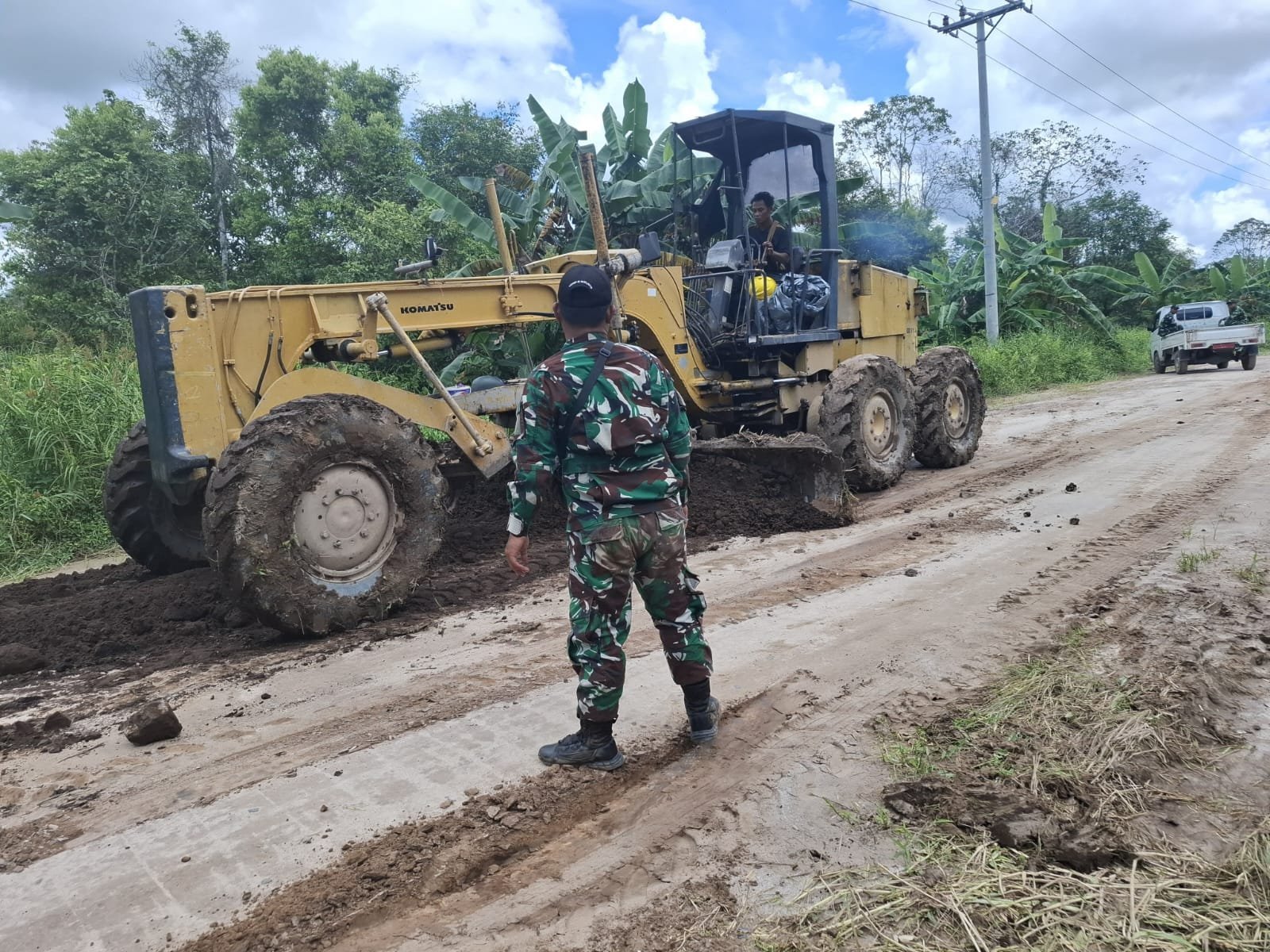 Pratu Ego, yang ditugaskan mendampingi operator alat berat di lapangan, menegaskan bahwa seluruh sumber daya dikerahkan untuk menuntaskan proyek pembangunan sesuai target yang telah direncanakan.