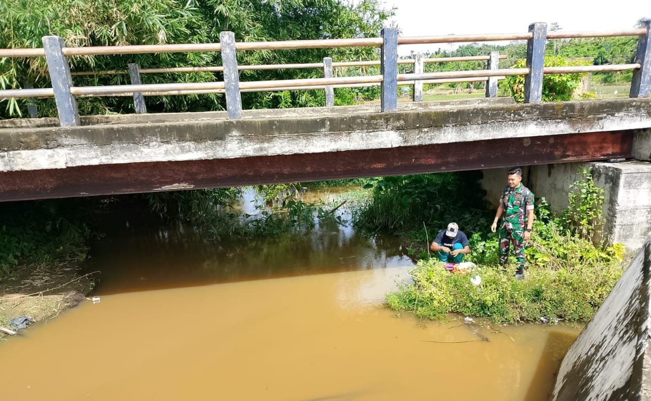 Kaur- Salah seorang anggota Satgas TMMD Ke-124 Kodim 0408/BS terlihat tengah mendampingi warga memancing ikan di pinggir sungai di Desa Bandu Agung Kecamatan Kaur Utara Kabupaten Kaur,Senin (12/5/25)