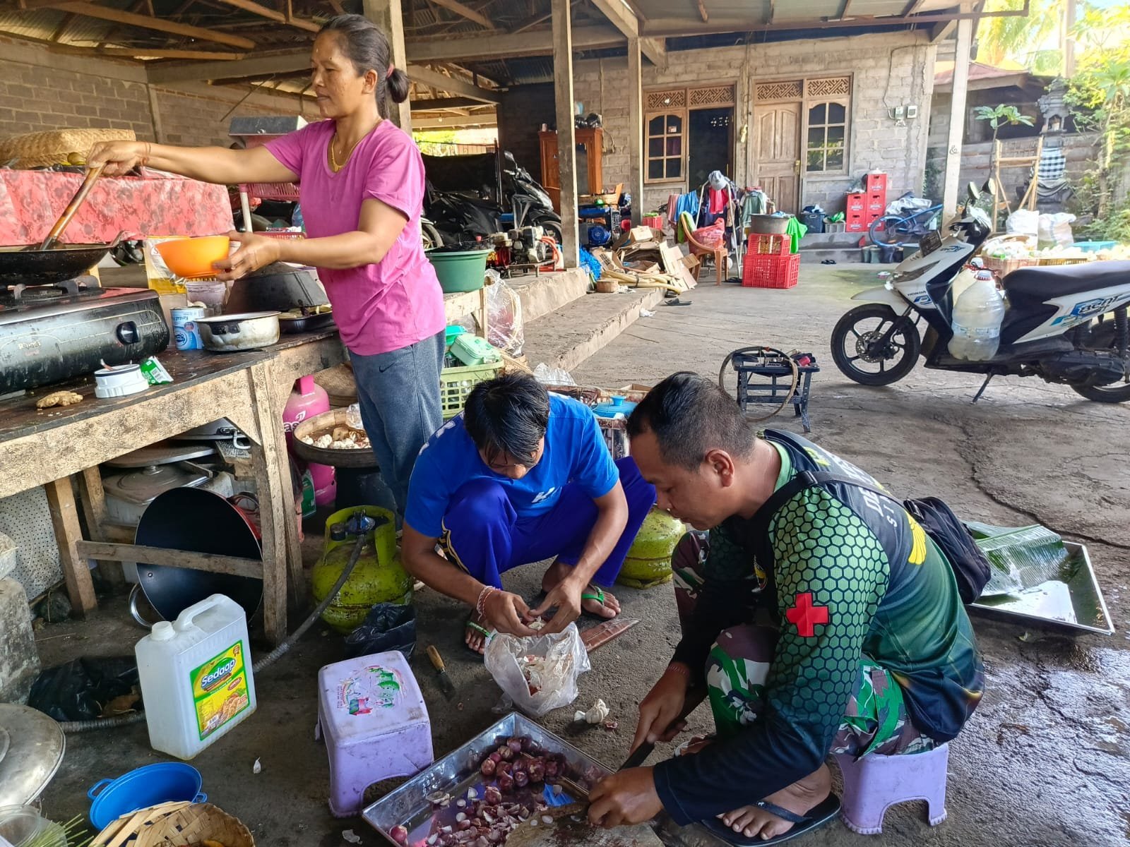 Serda Ketut Madeg Satria bersama tim kesehatan dari RST Singaraja menyempatkan diri memasak di rumah salah satu warga, Bapak Gede Sukrata alias Kepod, 52 Tahun, petani, Banjar Dinas Seganti, Desa Depeha,Kec Kubutambahan