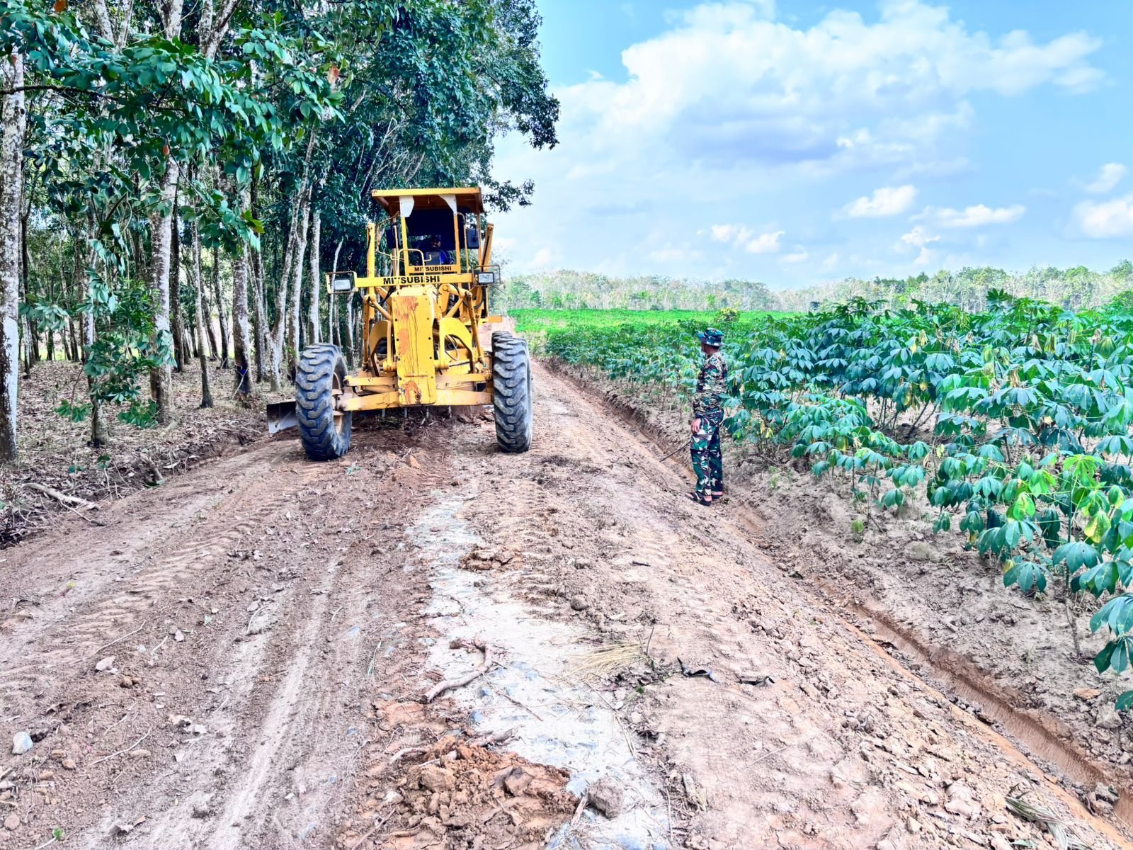 Moris Jaya, Banjar Agung — Program TNI Manunggal Membangun Desa (TMMD) ke-125 Kodim 0426/Tulang Bawang terus berjalan, salah satunya melalui kegiatan pembuatan badan jalan di Kampung Moris Jaya, Kecamatan Banjar Agung, Kabupaten Tulang Bawang. Pekerjaan ini merupakan tahap awal sebelum dilakukan proses pengerasan jalan.