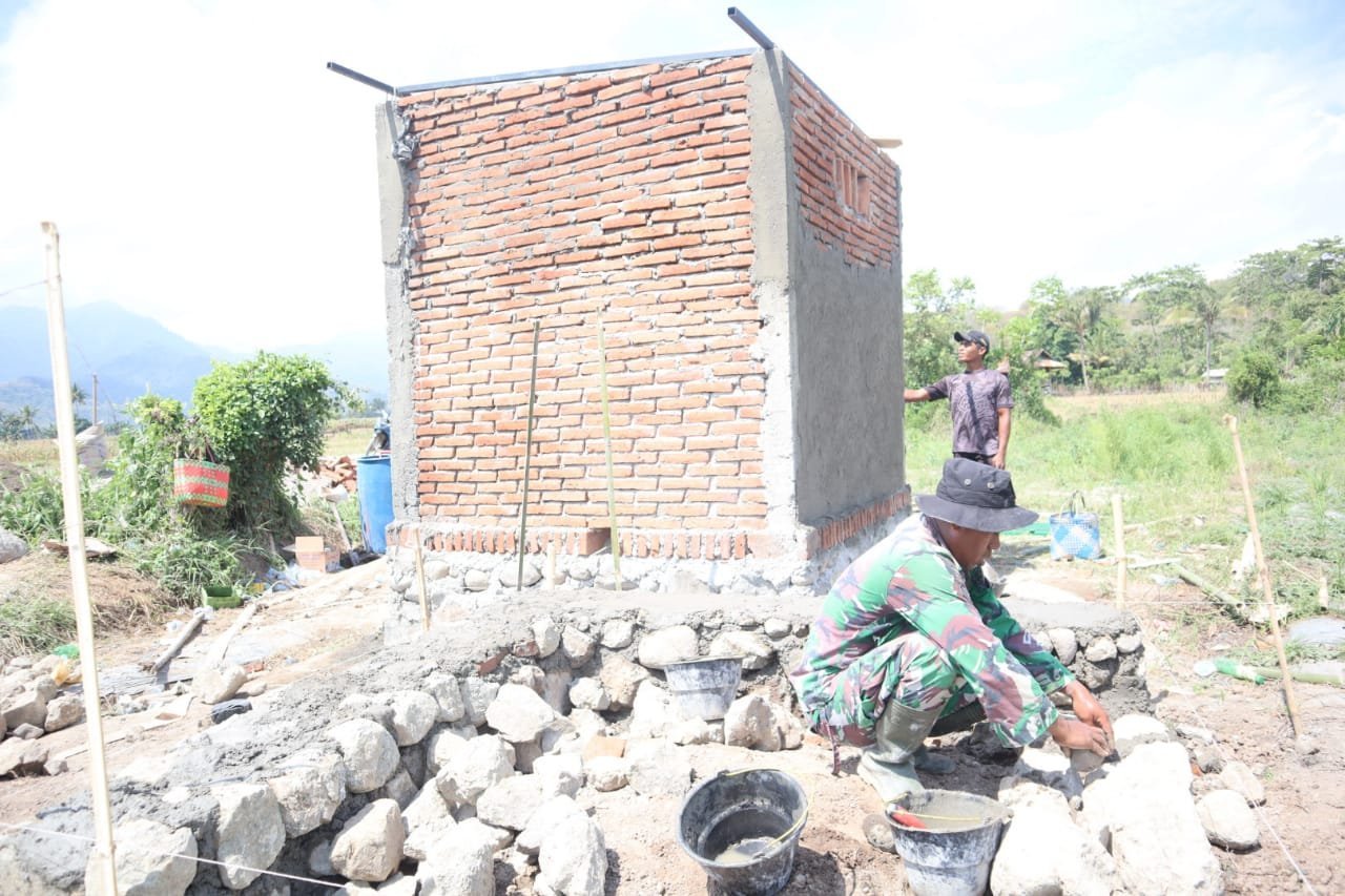 Pantauan di lapangan, personel Satgas TMMD bersama masyarakat tampak bahu-membahu mengerjakan plesteran bagian luar maupun dalam bangunan, sekaligus memulai pemasangan rangka atap. Pekerjaan ini menjadi bagian penting menuju tahap akhir penyelesaian rumah sumur bor yang nantinya akan menjadi fasilitas vital penyedia air bersih bagi warga sekitar.