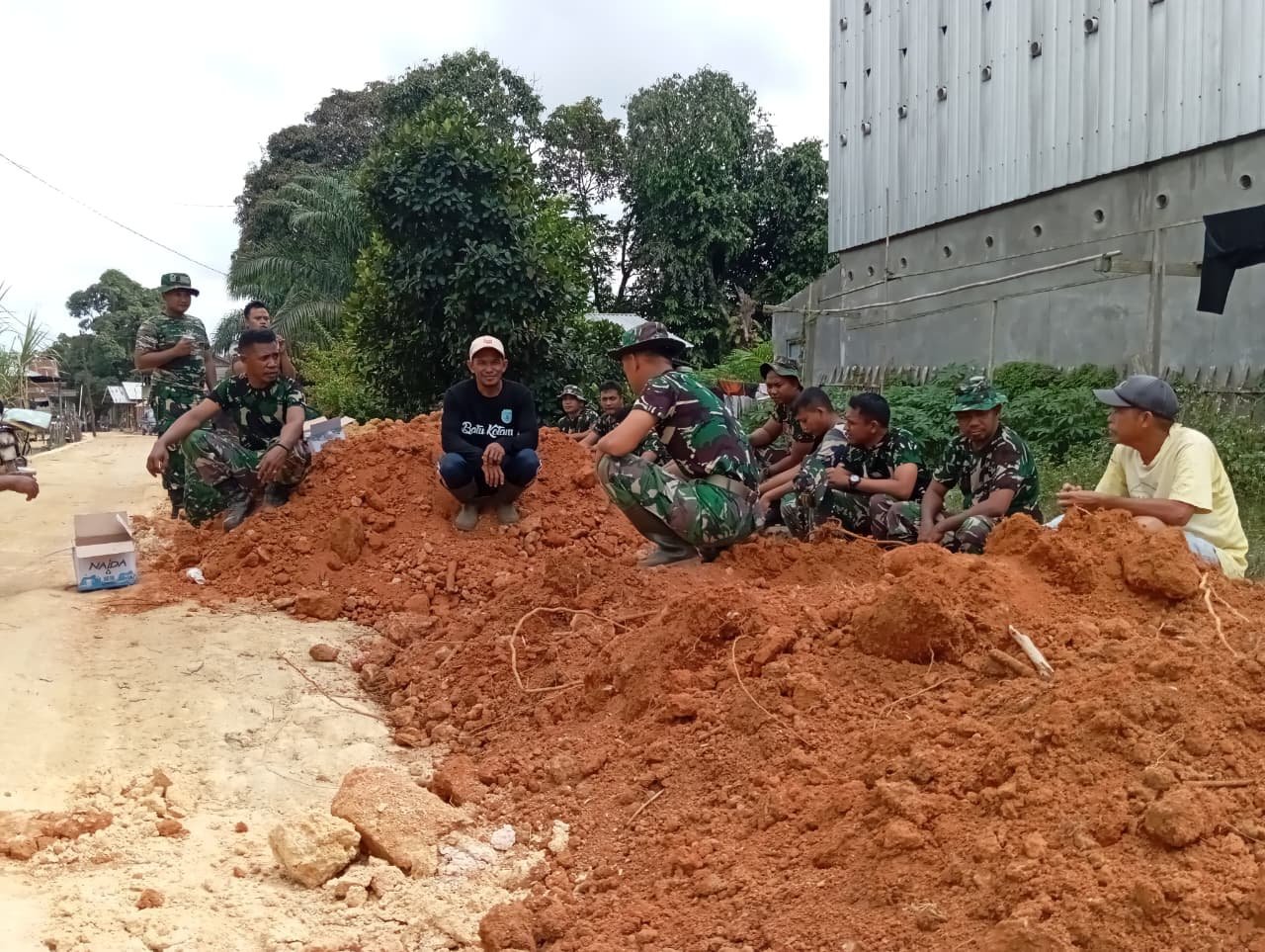 Warga Desa Batu Kotam pun tampak antusias, ikut bercanda bersama prajurit TNI sambil membantu memindahkan material dan meratakan tanah. Kepala Desa menuturkan, “Kehadiran TNI yang dekat dengan warga, bisa bekerja serius tapi tetap santai, membuat kami senang dan bangga.”