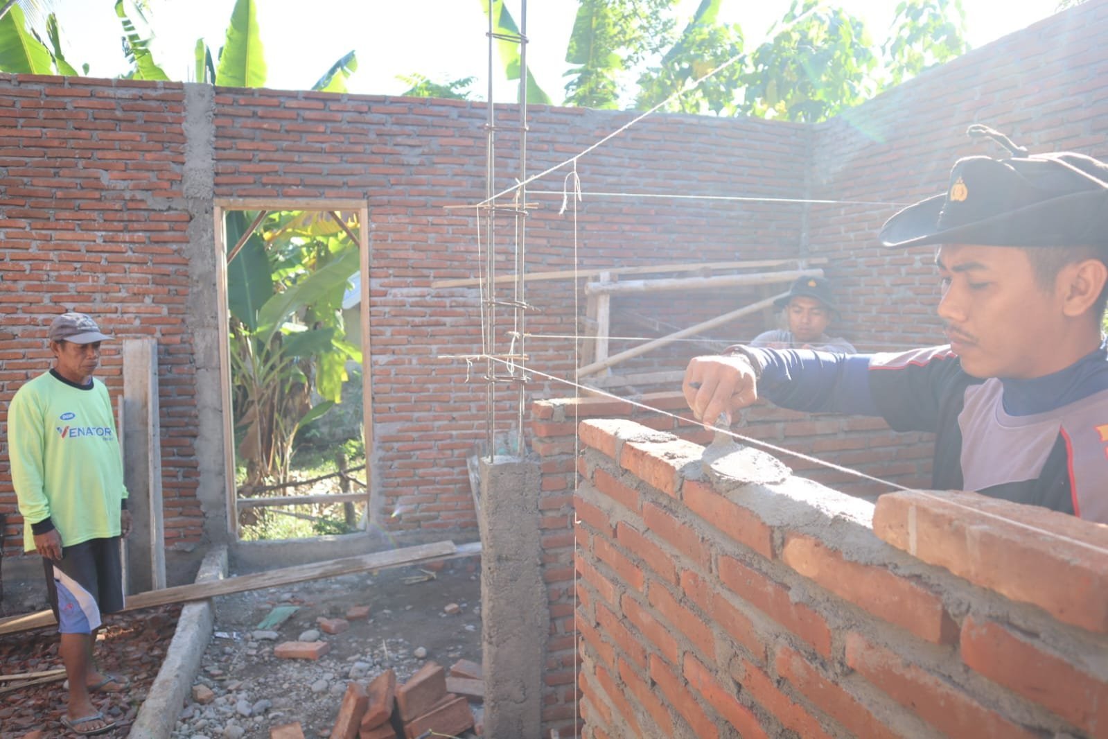 Pemasangan batu bata ini menjadi tahapan krusial dalam pembangunan RTLH, karena membentuk kerangka utama bangunan sebelum nantinya dilanjutkan ke bagian atap, instalasi listrik, dan MCK.