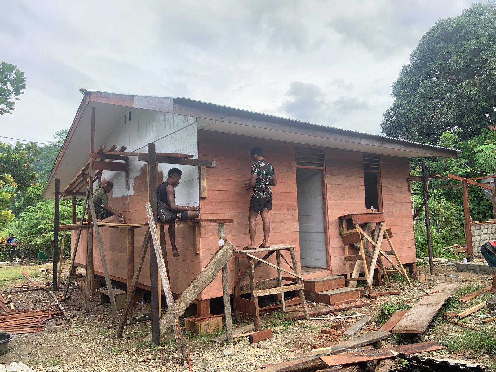 Pengecatan ini merupakan bagian dari tahap finishing dalam proses rehabilitasi RTLH, yang tidak hanya memperindah tampilan rumah tetapi juga memberikan perlindungan terhadap dinding dari cuaca ekstrem yang kerap melanda wilayah Papua Tengah.