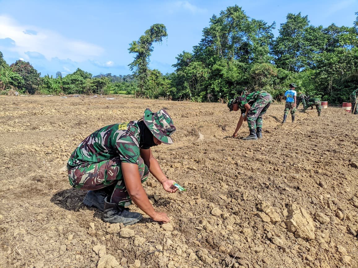 Desa Jamut, Kalimantan Tengah – 17 Oktober 2025. Satuan Tugas TNI Manunggal Membangun Desa (TMMD) ke-126 Kodim 1013/Muara Teweh terus menunjukkan kemajuan nyata dalam program ketahanan pangan. Setelah sebelumnya melakukan pembukaan dan pengolahan lahan, kini kegiatan memasuki tahap penanaman berbagai komoditas unggulan di Desa Jamut, Kecamatan Teweh Timur, Kabupaten Barito Utara.