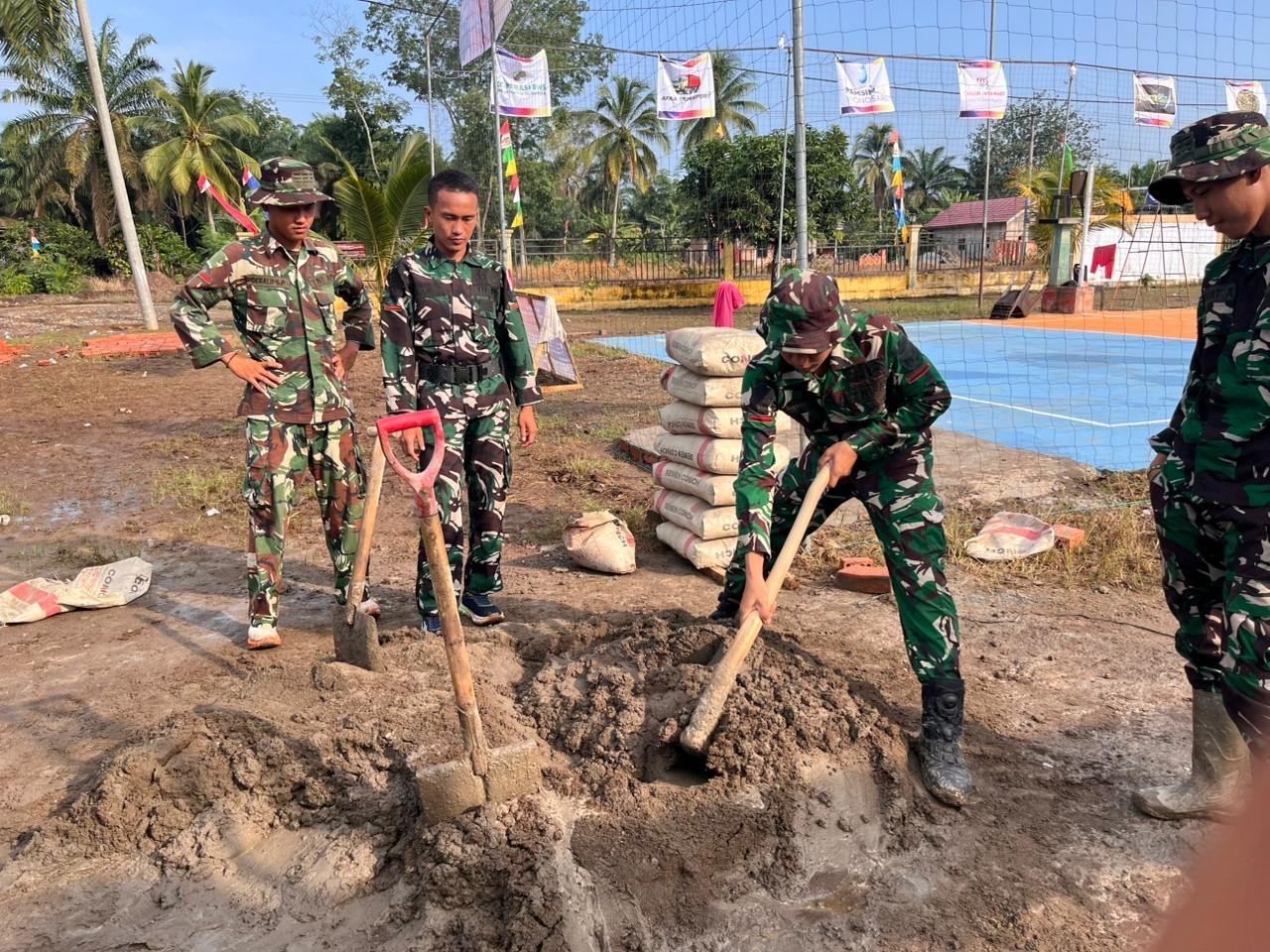 Banyuasin – Dalam upaya meningkatkan perekonomian masyarakat desa, anggota Satgas TMMD Ke-127 Tahun Anggaran 2026 dari Kodim 0430/Banyuasin melaksanakan kegiatan pembangunan koperasi di sekitar Kantor Desa Wonosari, Kecamatan Pulau Rimau, Kabupaten Banyuasin. Kegiatan ini dipimpin oleh Letda Inf Pamuji yang bertanggung jawab langsung atas pelaksanaan di lapangan.