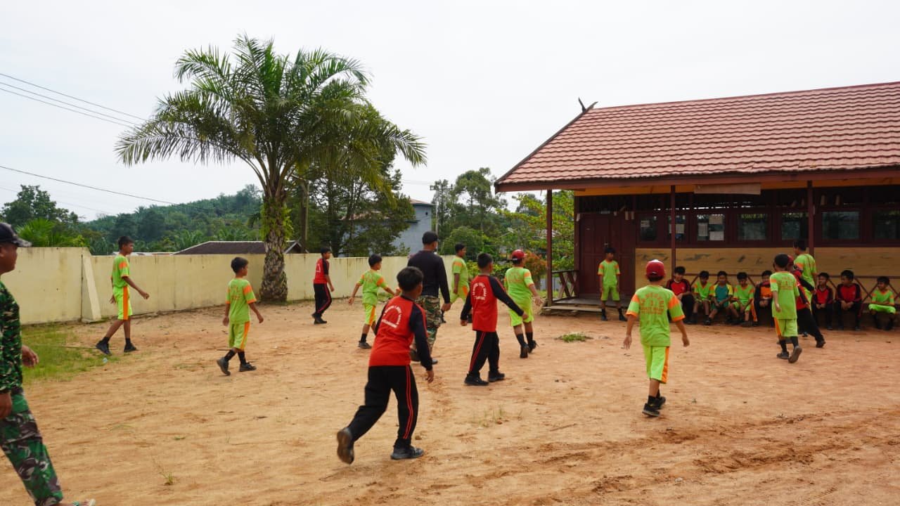 Kotawaringin Timur – Dalam rangka program TMMD ke-127, anggota Satgas Kodim 1015/Sampit melaksanakan kegiatan komunikasi sosial dengan anak-anak di Desa Bukit Indah melalui permainan sepak bola pada Jumat, 27 Februari 2026. Kegiatan yang berlangsung di lapangan SDN 1 Bukit Indah ini dilaksanakan dengan sederhana, menggunakan bola plastik dan batu sebagai penanda gawang. Meskipun dengan fasilitas yang terbatas, antusiasme anak-anak untuk berpartisipasi sangat tinggi.