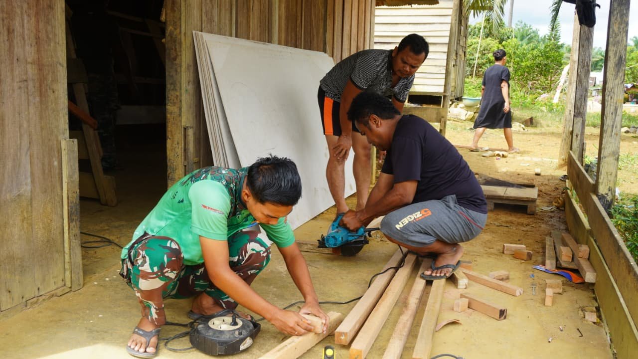 Di Desa Tri Buana, Kecamatan Telaga Antang, anggota Satgas berkolaborasi dengan warga setempat untuk menyelesaikan berbagai tahap pekerjaan, termasuk pemasangan dinding, perbaikan atap, dan pengecatan. Meskipun hari itu adalah hari istirahat, mereka tetap bersemangat fokus agar rumah yang menjadi sasaran program dapat segera ditempati dengan kondisi yang lebih baik.