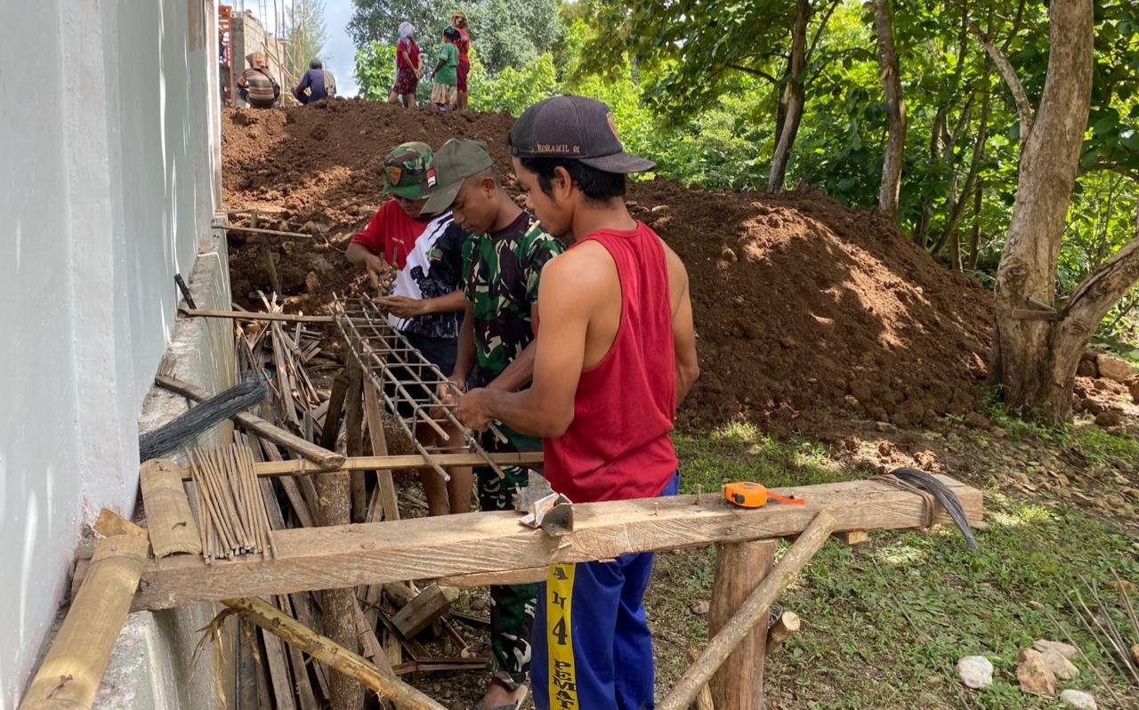 Kefamenanu, NTT – Kamis, 12 Februari 2026. Proses pembangunan empat ruang kelas baru di SMAN Bikomi Nilulat, Desa Sunkaen, menunjukkan kemajuan yang menggembirakan. Anggota Satgas TMMD Ke-127 dari Kodim 1618/TTU saat ini tengah berfokus pada tahap merangkai besi tiang cor, yang merupakan elemen penting dalam struktur bangunan.