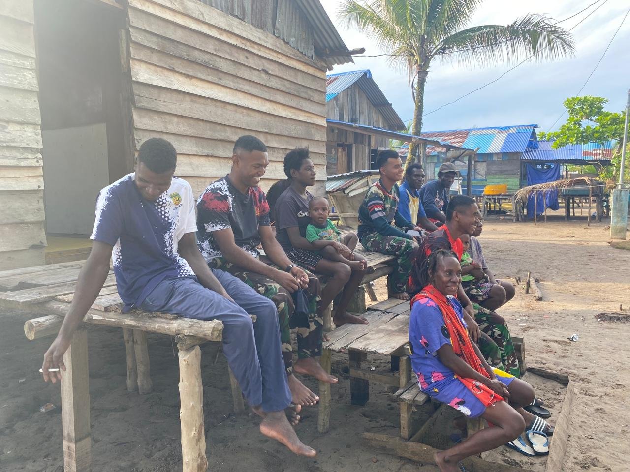 Timika – Anggota Satgas TMMD Reguler ke-128 dari Kodim 1710/Mimika melaksanakan kegiatan komunikasi sosial (Komsos) dengan masyarakat Kampung Keakwa, Distrik Mimika Tengah, Kabupaten Mimika pada Kamis (23/04/2026). Tujuan dari Komsos ini adalah untuk memperkuat kemanunggalan antara TNI dan masyarakat setempat.