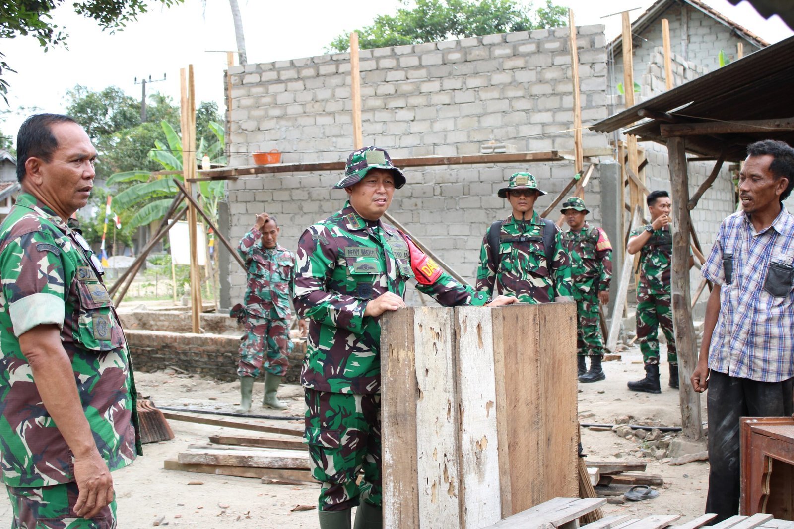 Pada Kamis (31/07/2025), personel Satgas bersama warga setempat melanjutkan proses pekerjaan RTLH yang kini memasuki tahapan penyesuaian struktur dan pemantapan pondasi.
