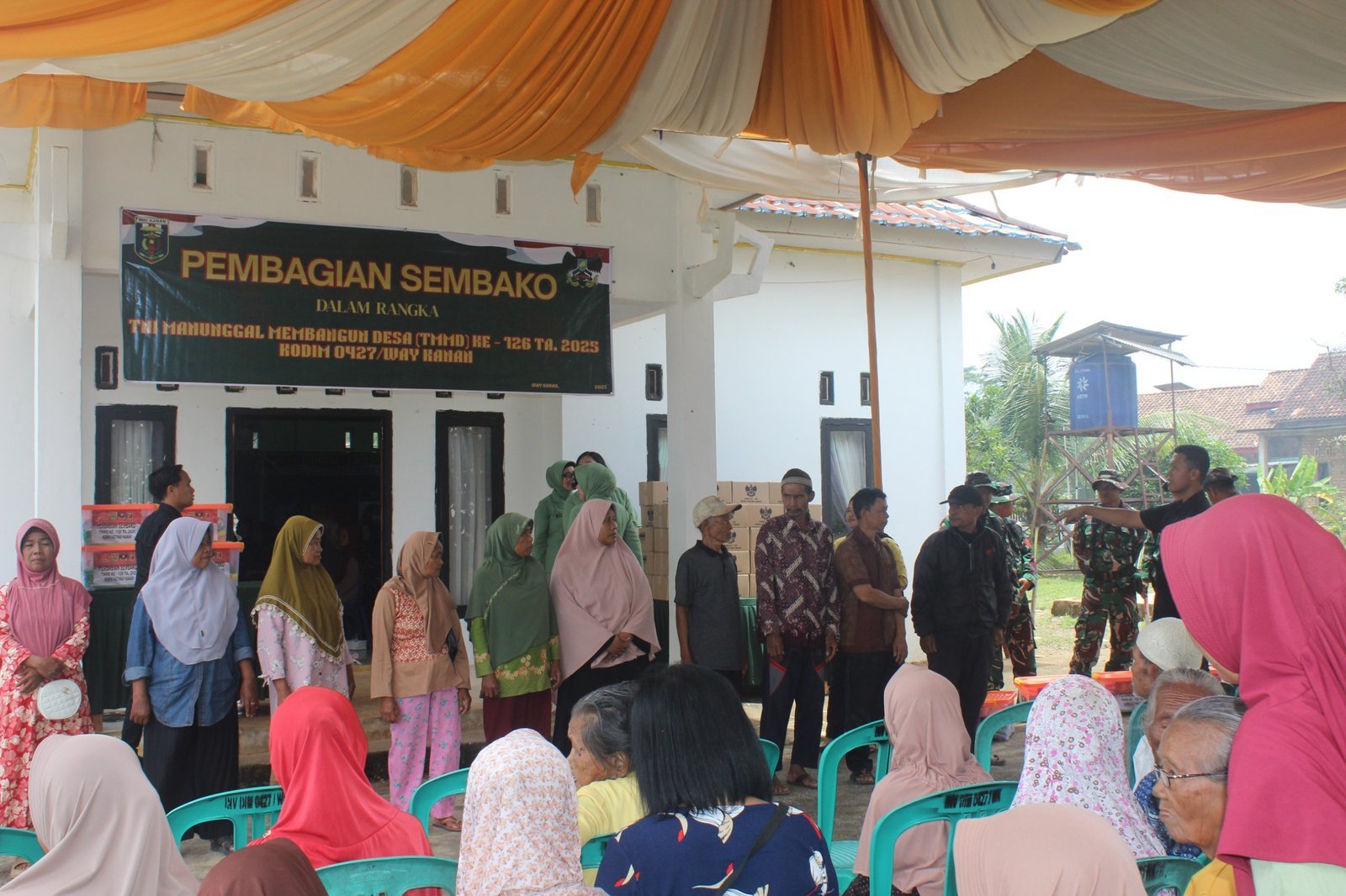 Satgas TMMD Kodim 0427/Way Kanan Ringankan Beban Warga Lewat Pembagian Sembako
