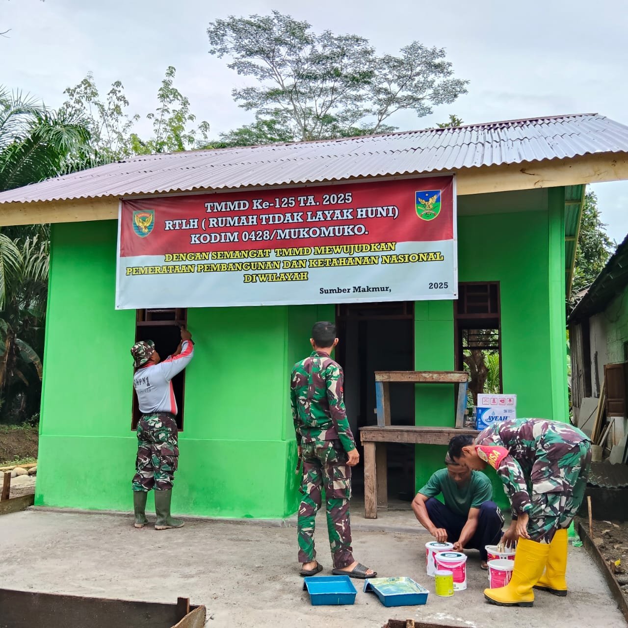 Satgas TMMD Kodim 0428/Mukomuko Laksanakan Pengecatan Rumah RTLH di Desa Sumber Makmur